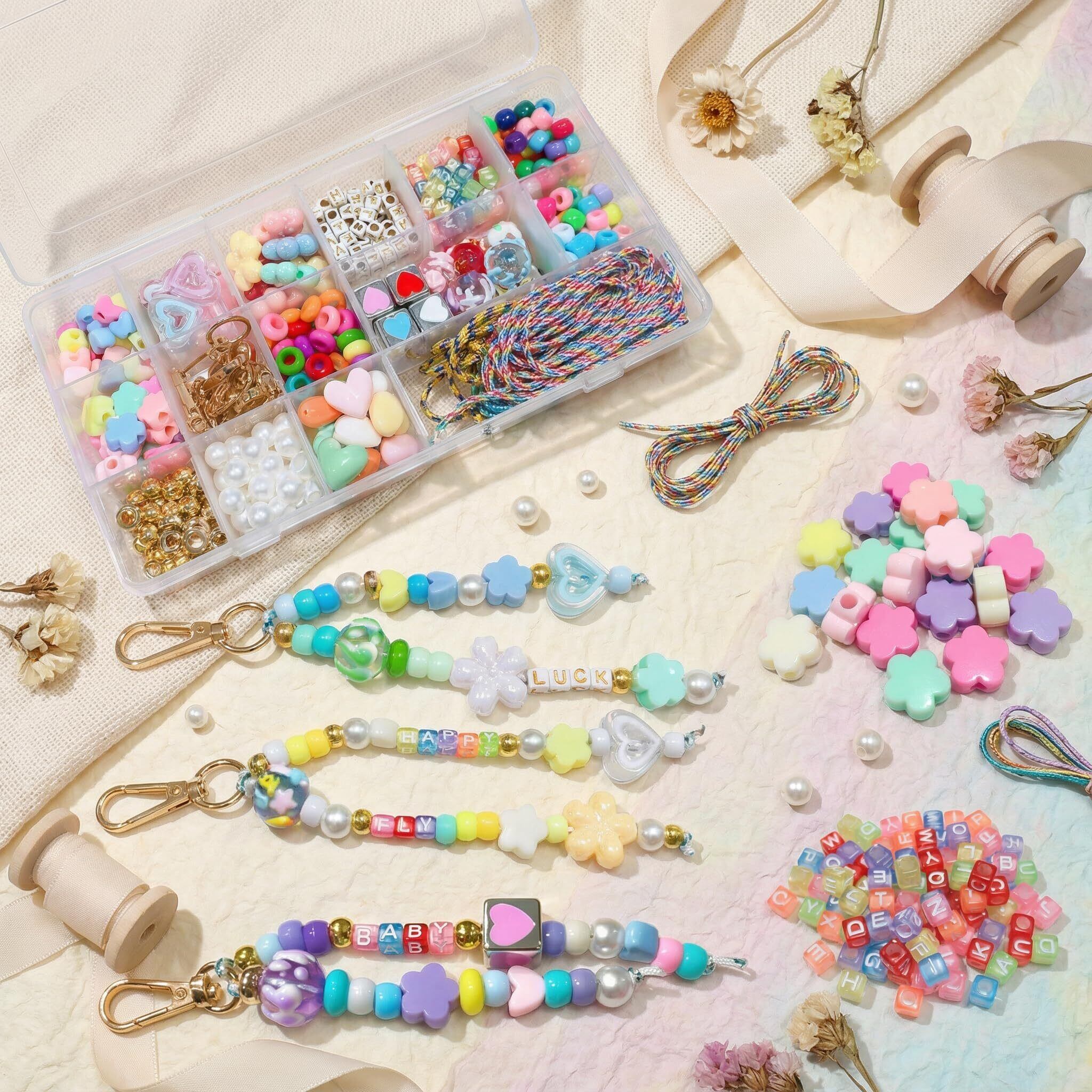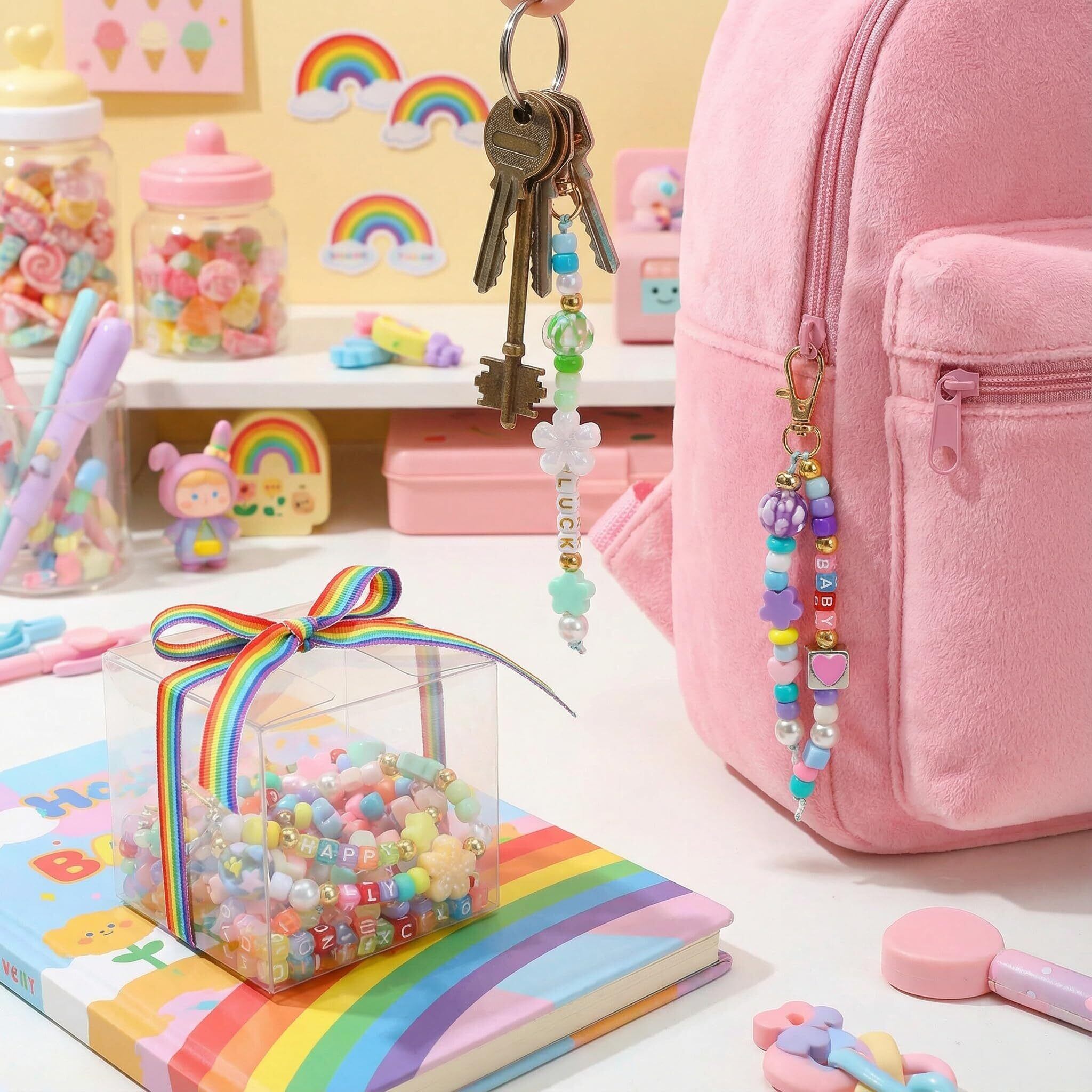 Acidea DIYキーチェーン製品 543個、作りギフトアクセサリーや工芸品のジュエリー作りを作るためのキットを作るビーズ、穴のある工芸品用ルーズパール、柔らかい色アクセサリーパーツ、キーホルダー 手作りDIYプロジェクト用 ペンダントオーナメントのアルファベットビーズキーホルダー パーツ