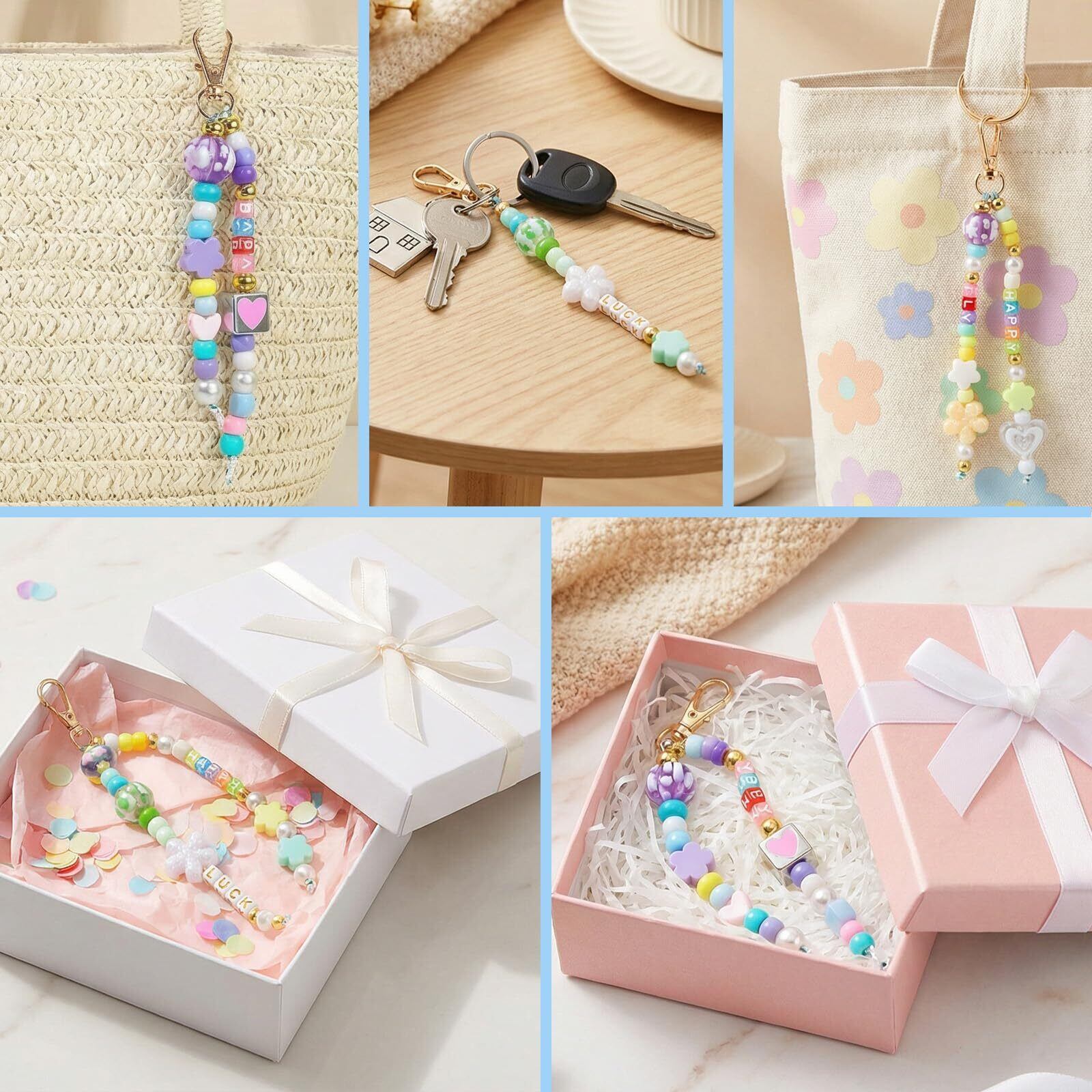 【良質な材料】:キーホルダー製作キットにはさまざまな精巧で美しい材料があり、あなたのアイデアニーズを満たすことができます。金属キーリングは丈夫で耐久性があり、工芸品の耐久性を確保します。付属のプラスチックビーズは丈夫で魅力的で、アイデアアイテムに彩りを添えてくれます。