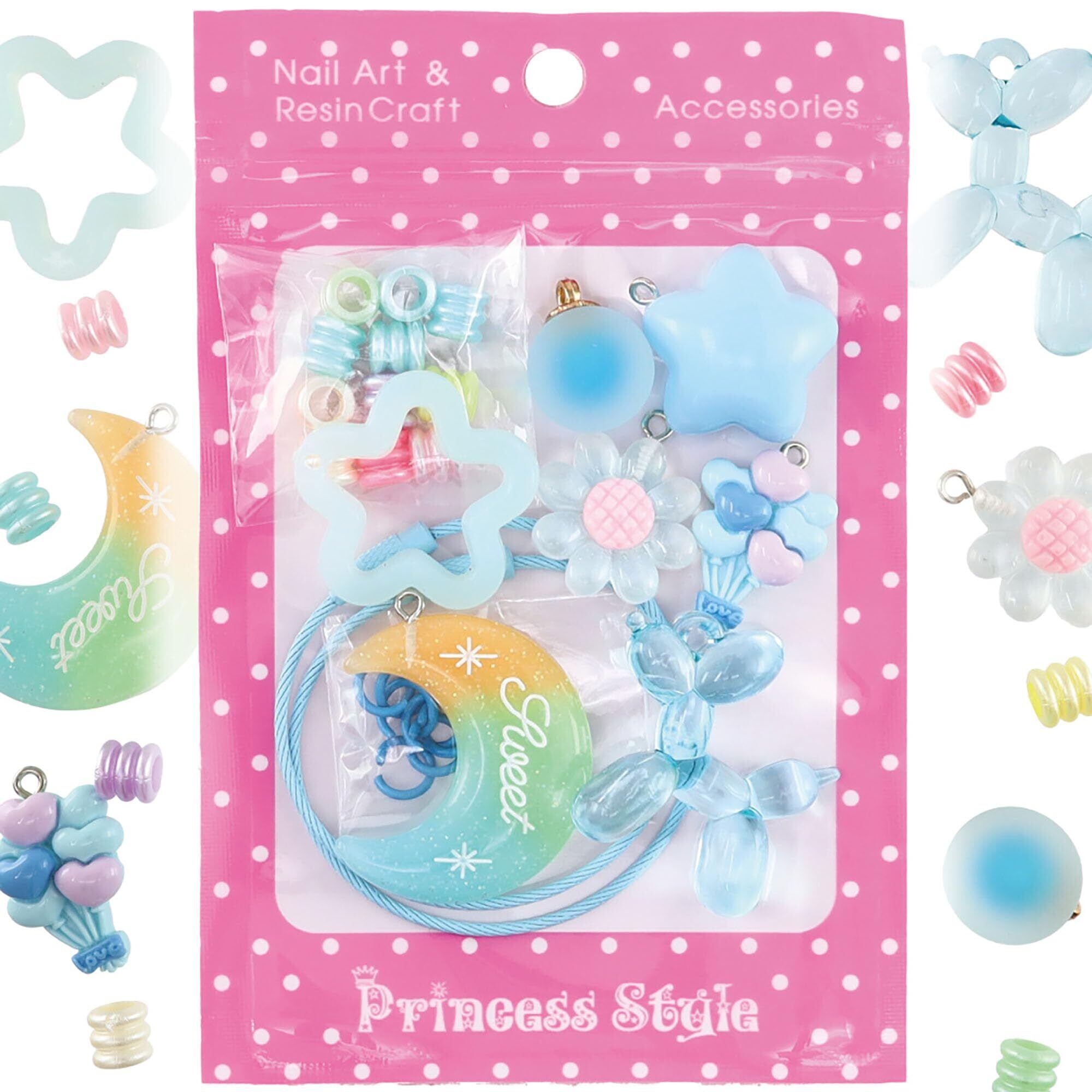 【新春セール】じゃらじゃら キーホルダー ジャラキー ストラップ パーツ 星 月 風船 プードル 花 クリア アクセサリーチャーム 推し活 推し色 メンカラ 韓国 ハンドメイド アクセサリー キット (ブルー)
