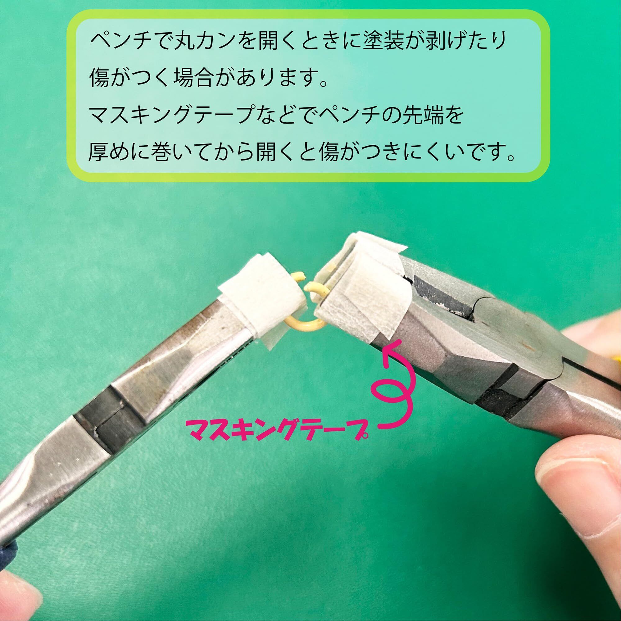 必要な工具:ペンチ2個(丸カンを閉じるため)