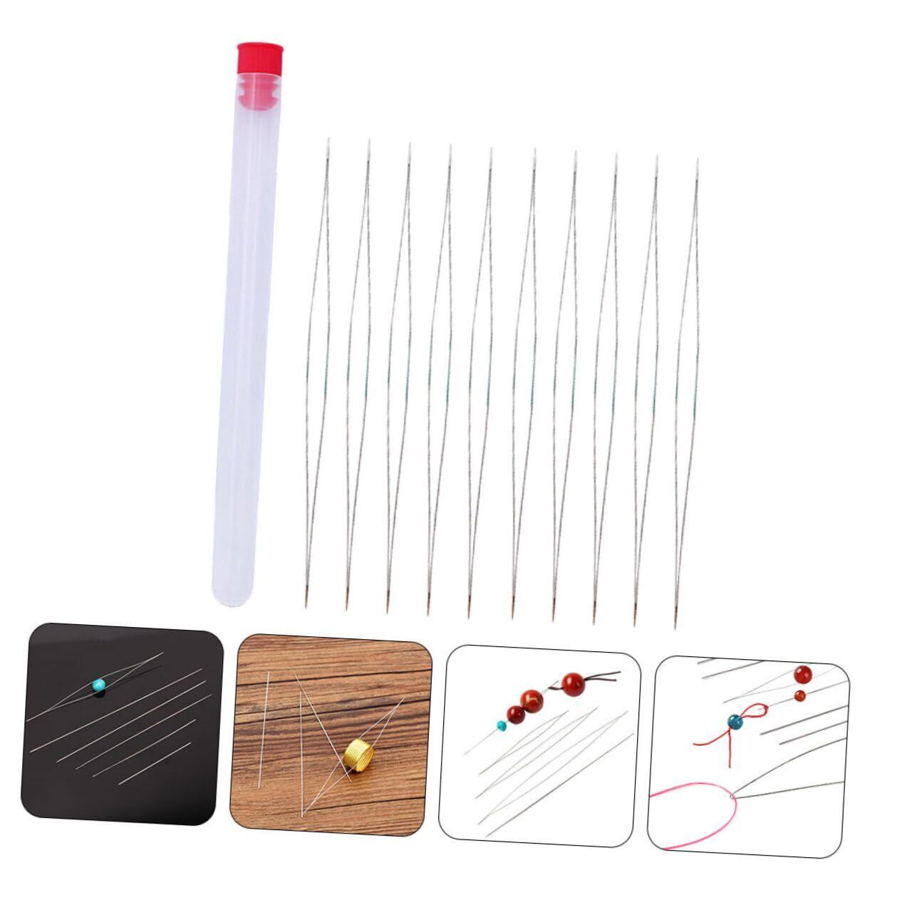 【在庫処分】iplusmile ビーズ針 セット 10本入り 極細 ビーズ通し 針 刺繍針 収納ケース付き ステンレス製 長針 ビーズ織り アクセサリー作り ジュエリー ブレスレット DIY 手芸用品 (15.5cm)