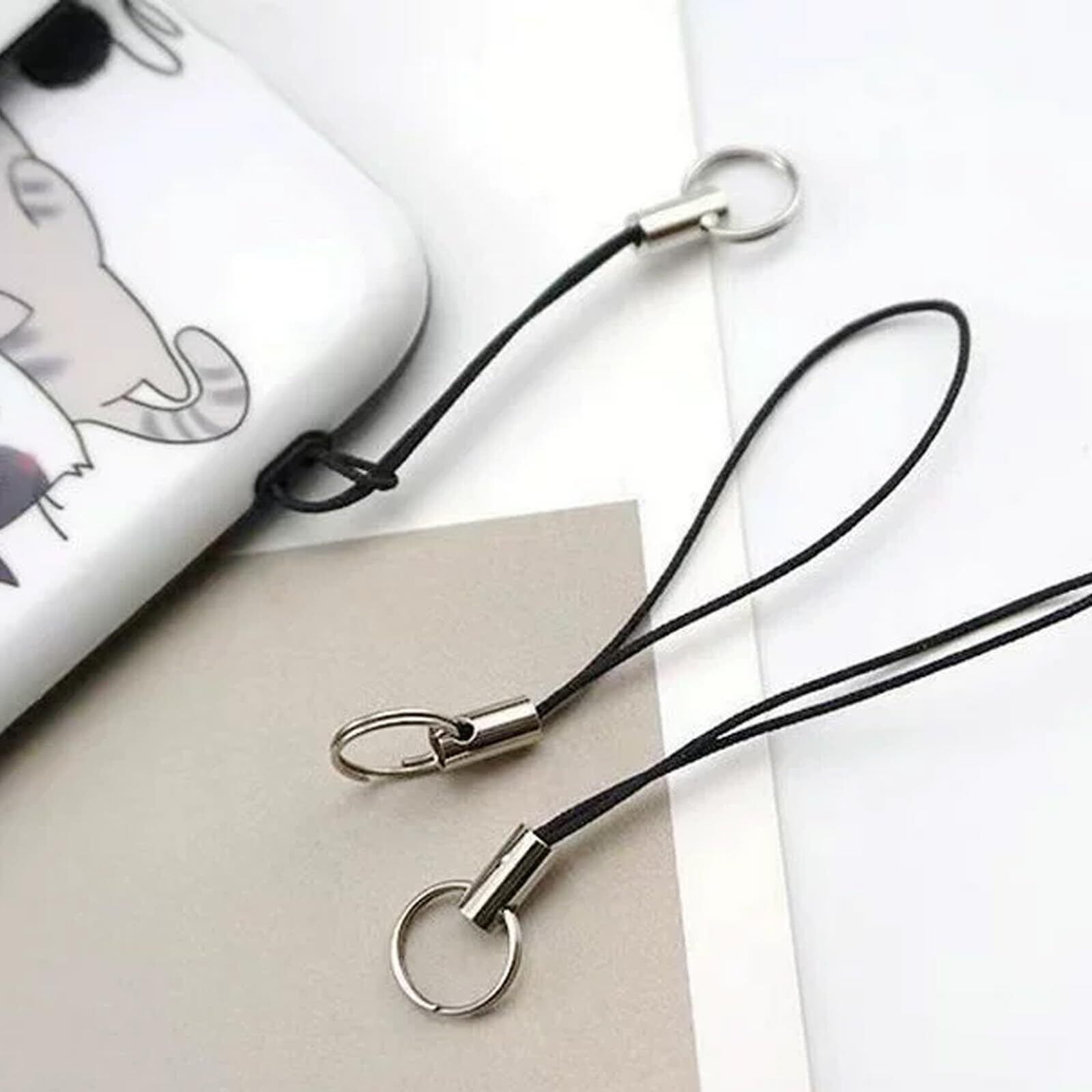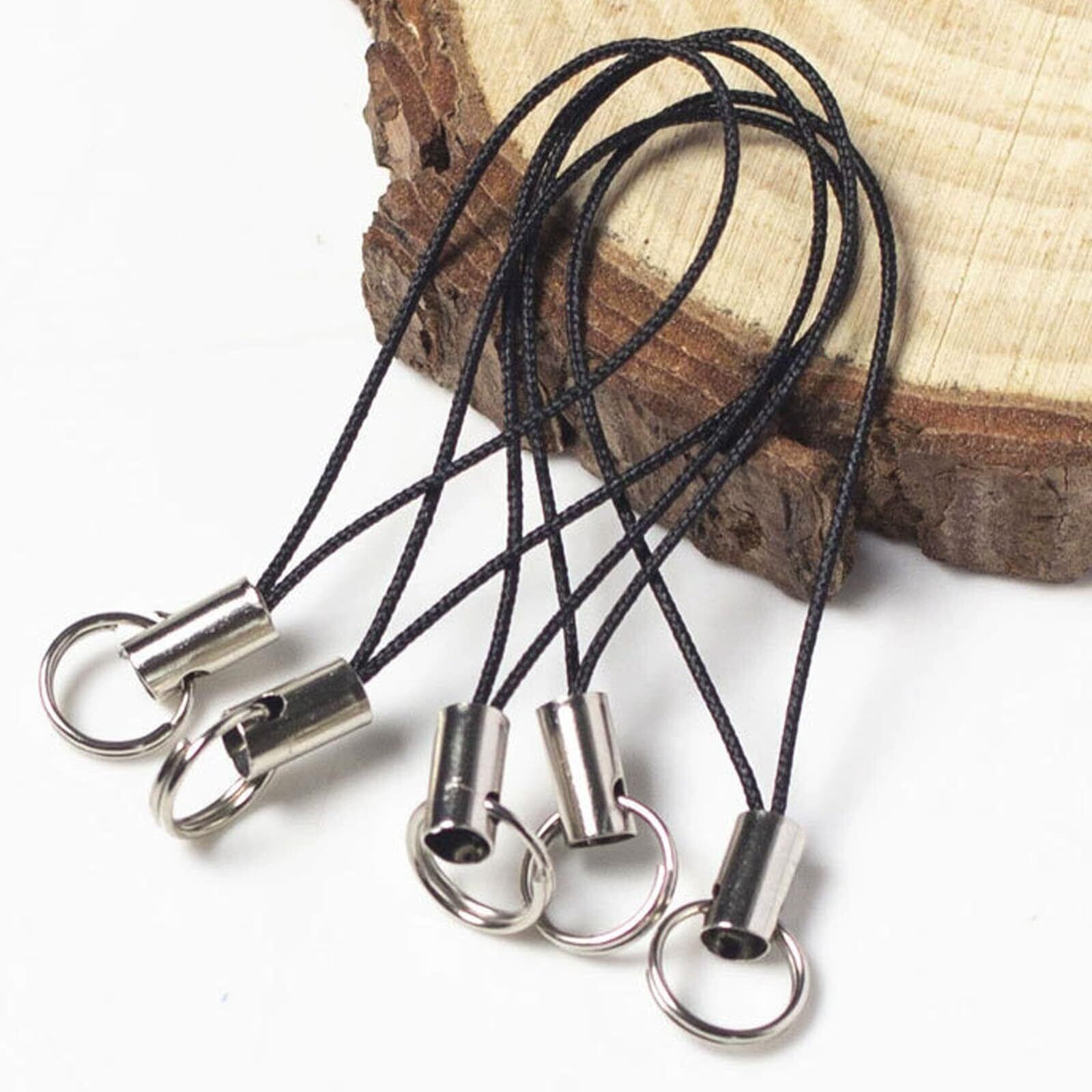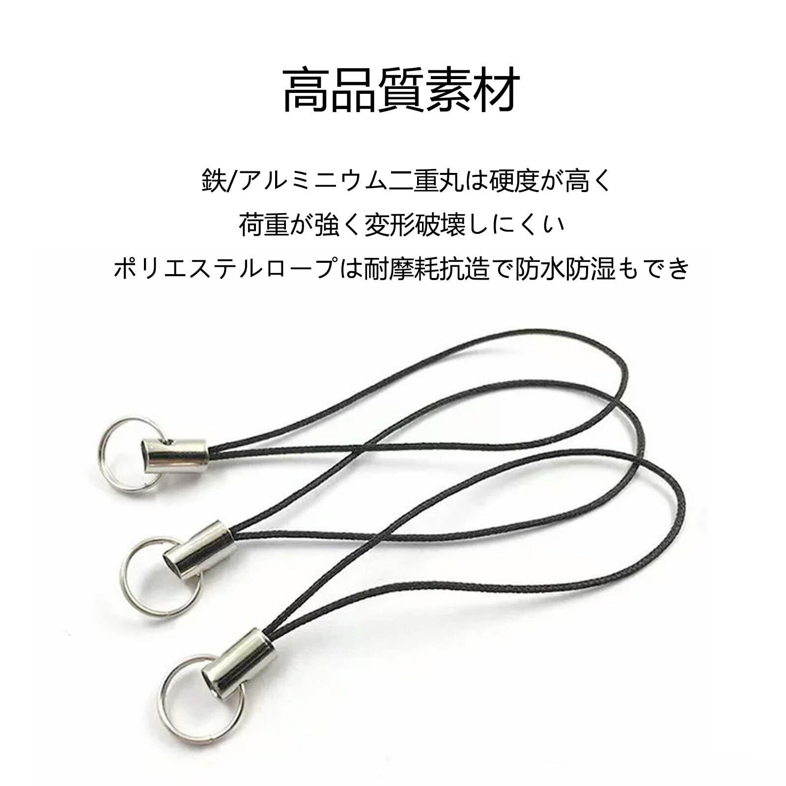 二重リングストラップ 紐 スマホアクセサリー DIY 手作りアクセサリーダブルリング(ブラック,10個セット)