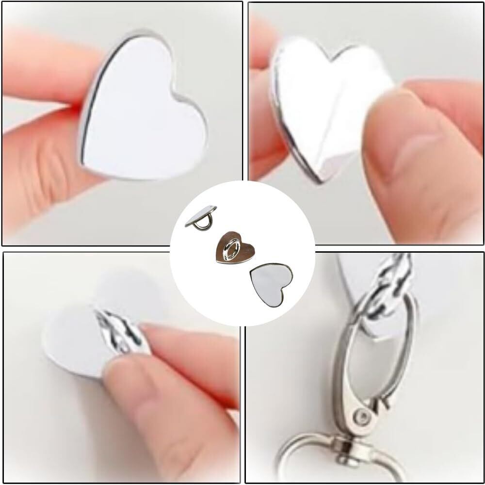 【在庫セール】8個 キーリングハンガー パーツ メタル スマホチェーン チェーン パーツ 貼り付け スマホ ケース アクセサリー部品 DIY フック金具 スマホケース用、ハート型 (ゴールド シルバー ブラック ピンク)