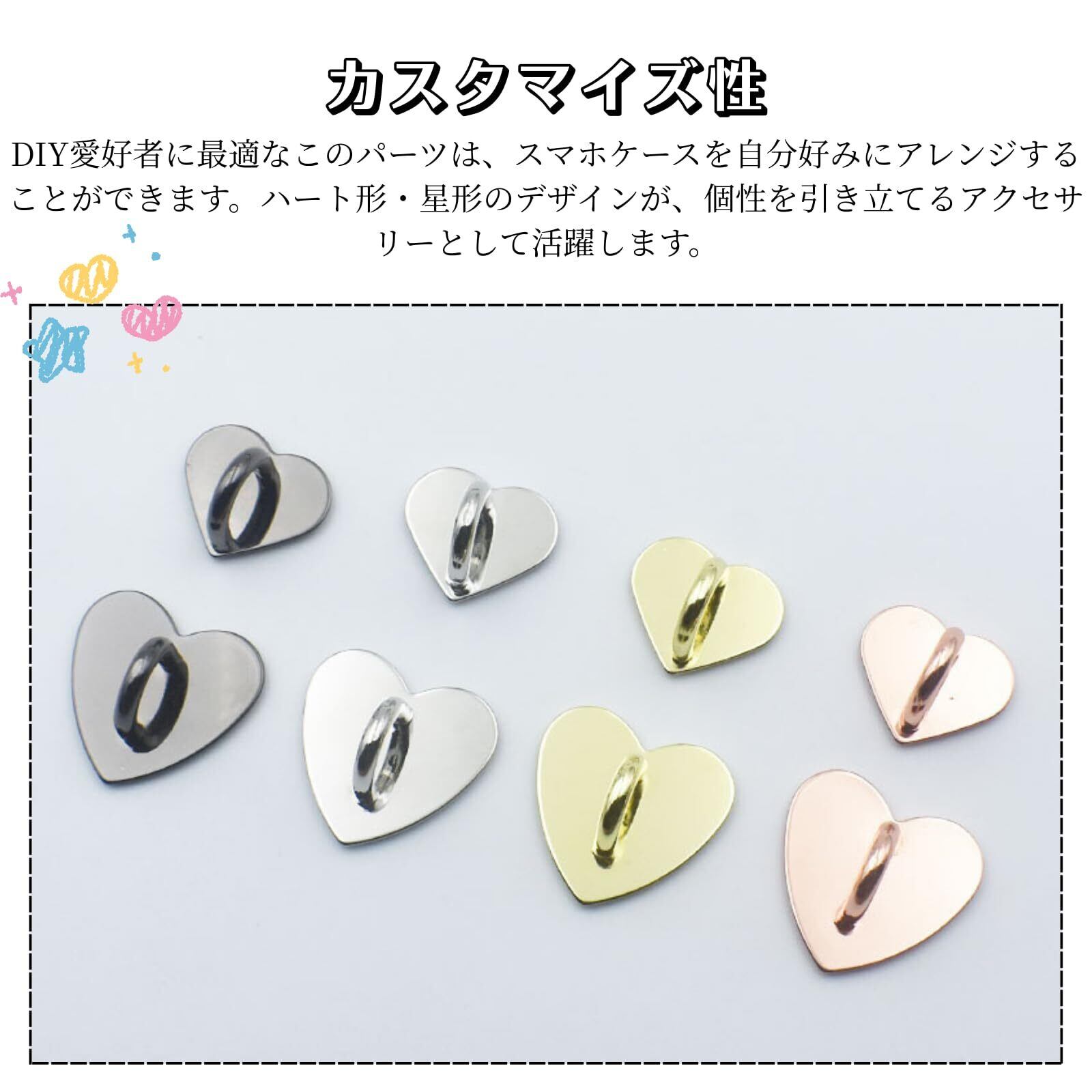 【カスタマイズ性】DIY愛好者に最適なこのパーツは、スマホケースを自分好みにアレンジすることができます。ハート形/星形のデザインが、個性を引き立てるアクセサリーとして活躍します。