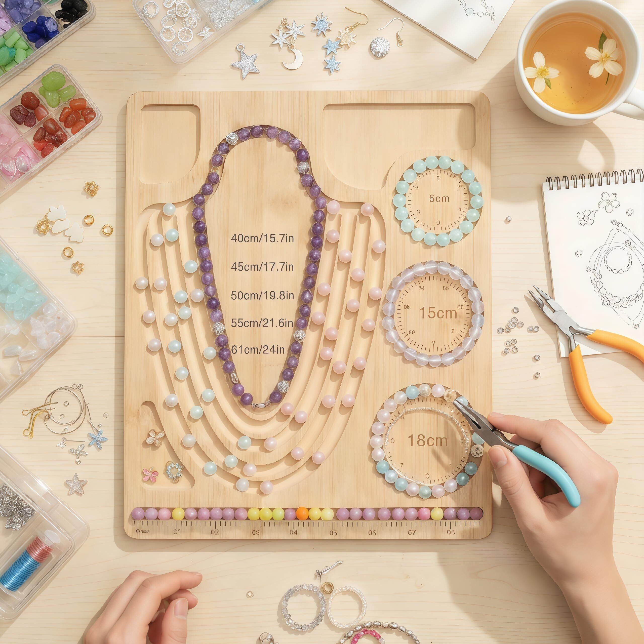 【2022最新】Acidea ネックレス デザインボード ビーズ作成キットデザインボード 天然石ブレスレット手作りキット 木製ビーズボード ジュエリー測定ボード 丸型ビーズボード