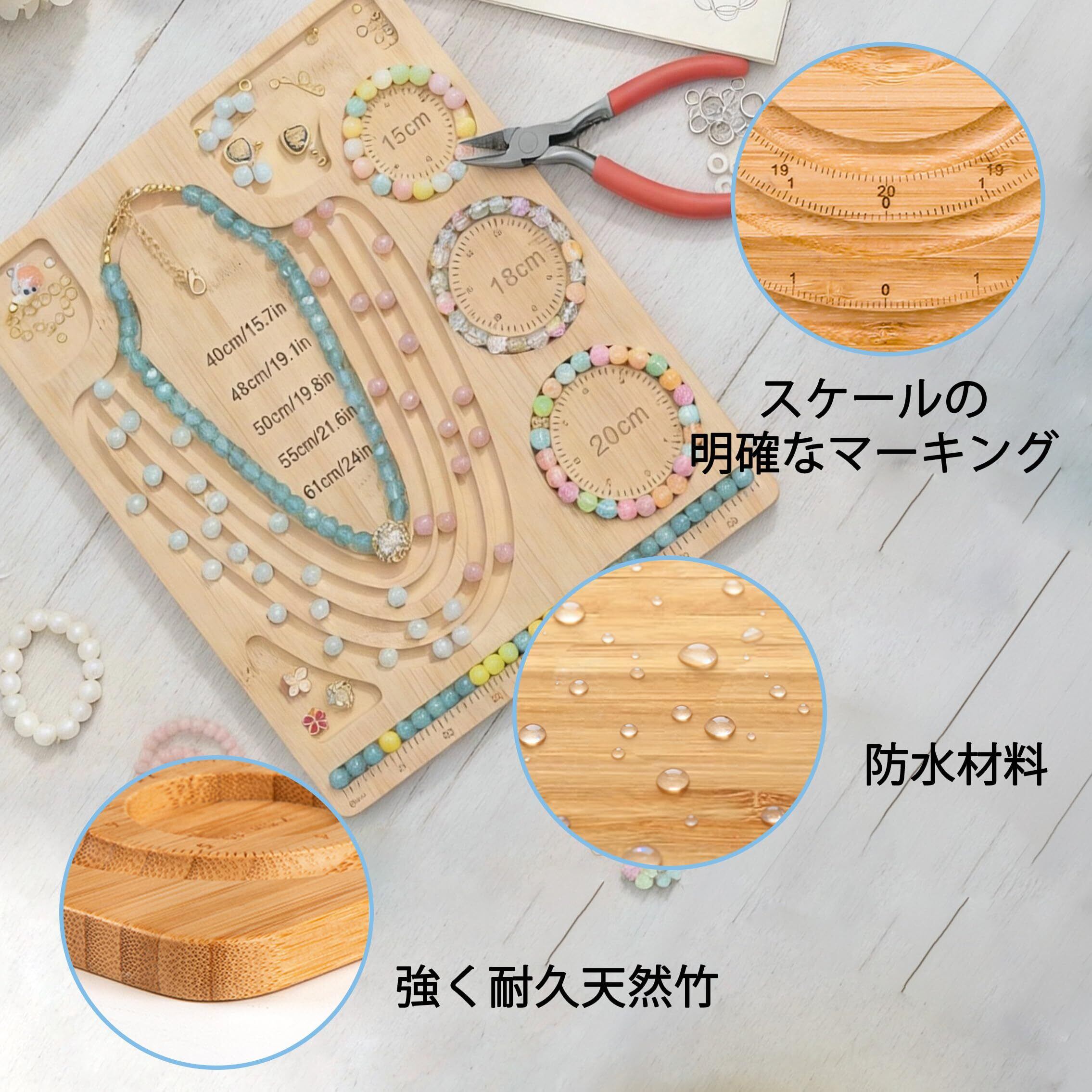 Acidea ネックレス デザインボード ビーズ作成キットデザインボード 天然石ブレスレット手作りキット 木製ビーズボード ジュエリー測定ボード 丸型ビーズボード