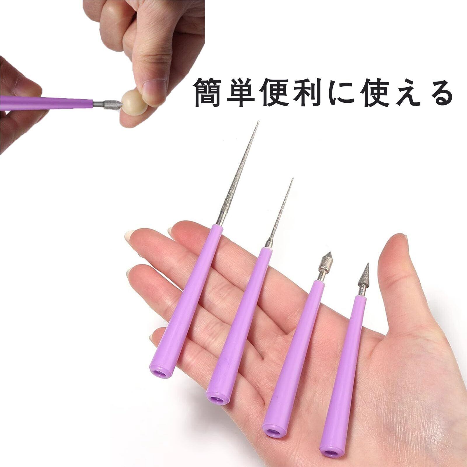 【多様なドリルビット設計】ダイヤモンドヤスリ4本セットは、尖針型・傘型・三角型などの形状を取り揃え、ジュエリーや金属、玉石などの精密な成形・バリ取り・研磨作業に適しています。さまざまな素材や加工ニーズに幅広く対応可能です。