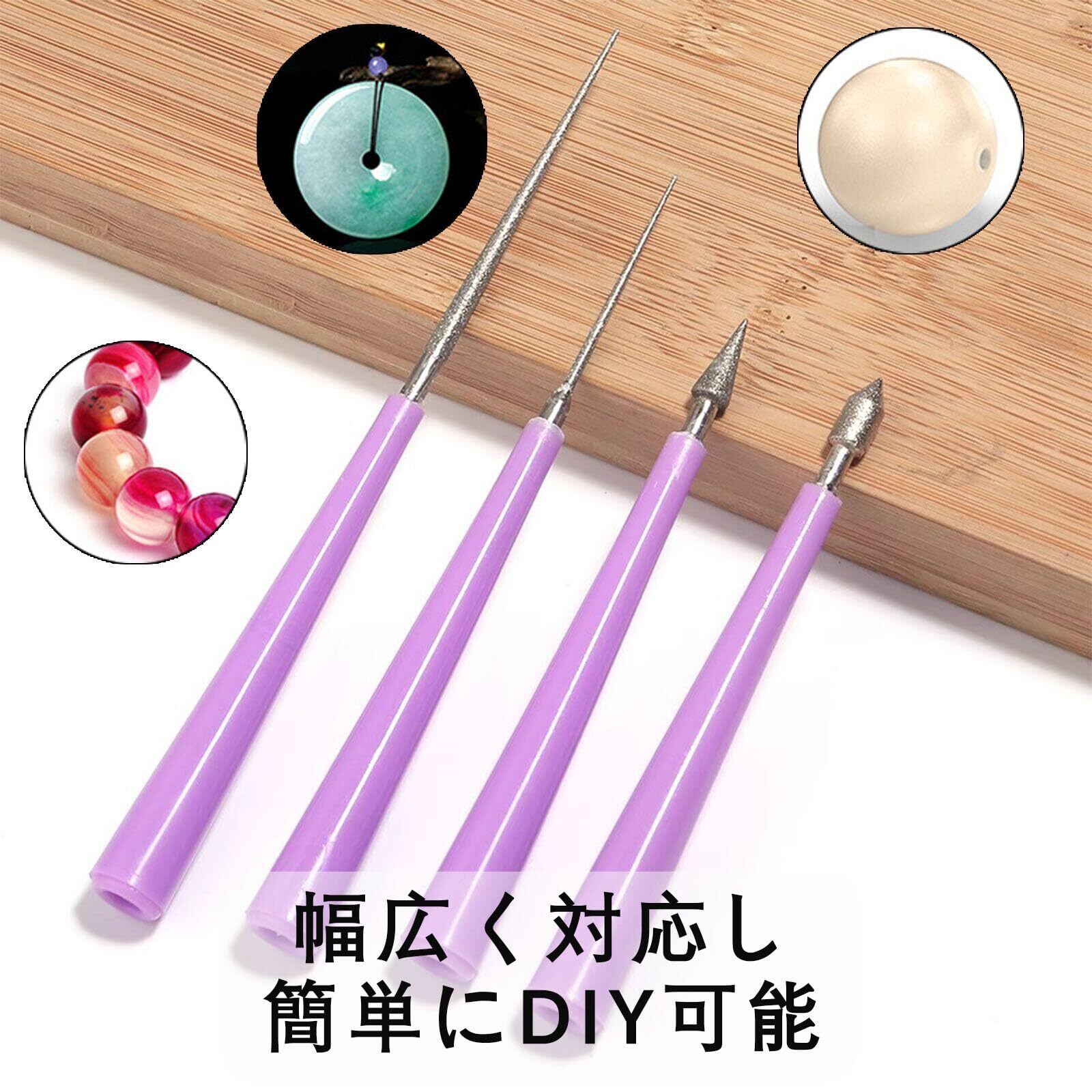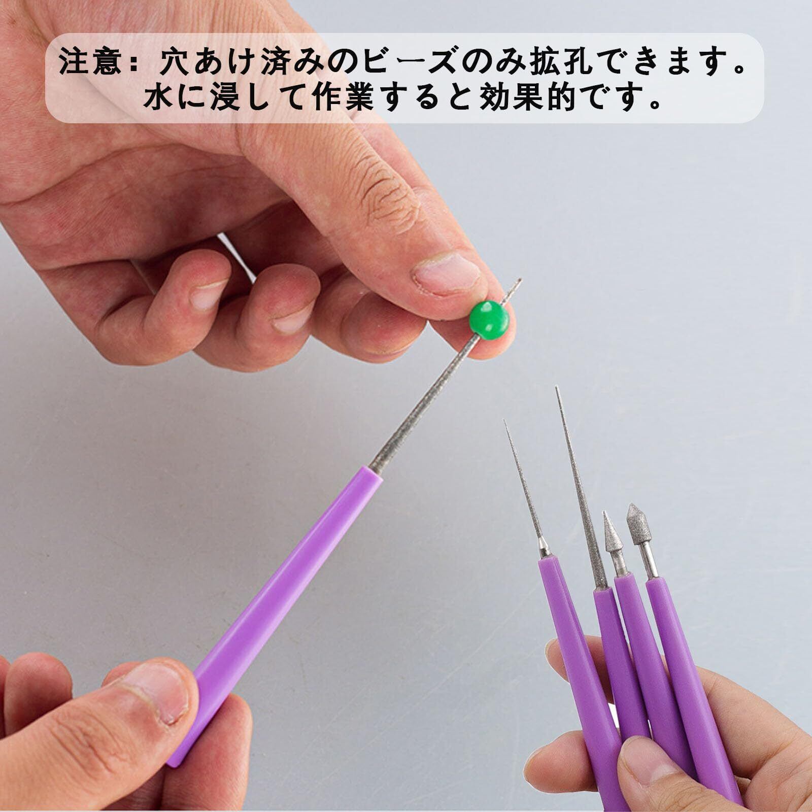 ジュエリーやすり 4本 ビーズリーマーセット ビーズ パール 穴拡張 穴削り バリビーズ 穴拡大ツールセット クラフトジュエリーアクセサリー ガラスプラスチック 天然石 拡張ドリル ハンドル 手動 手芸 真珠 研削 ジュエリーヤスリ やすりスティック