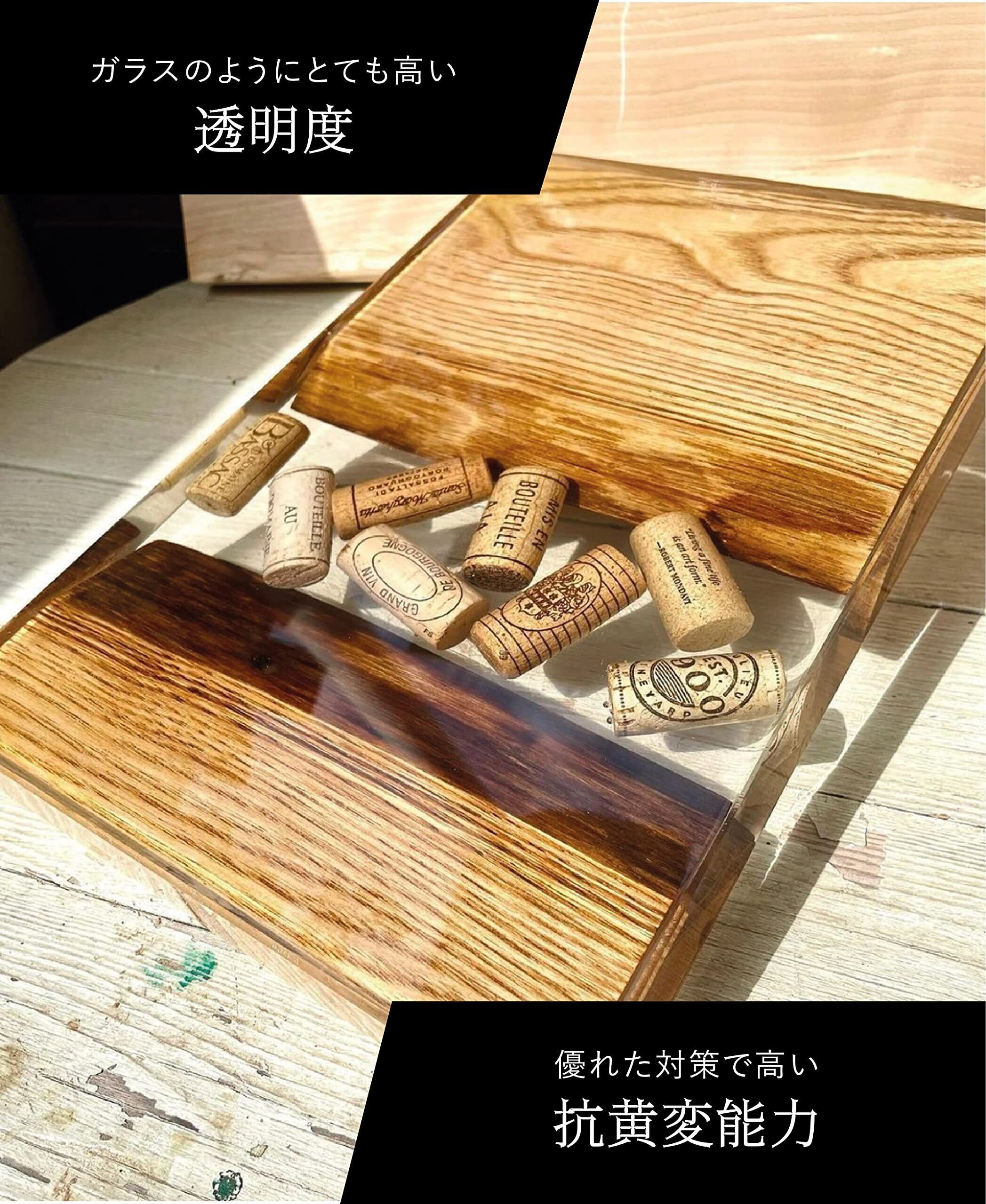 フローレスレジンのラインナップの中でも最も透明度が高く、フローレスレジン独自の最新の黄変対策も導入されているので、黄変させたくない・透明度に拘りたい作品などにも安心してお使い頂けます。