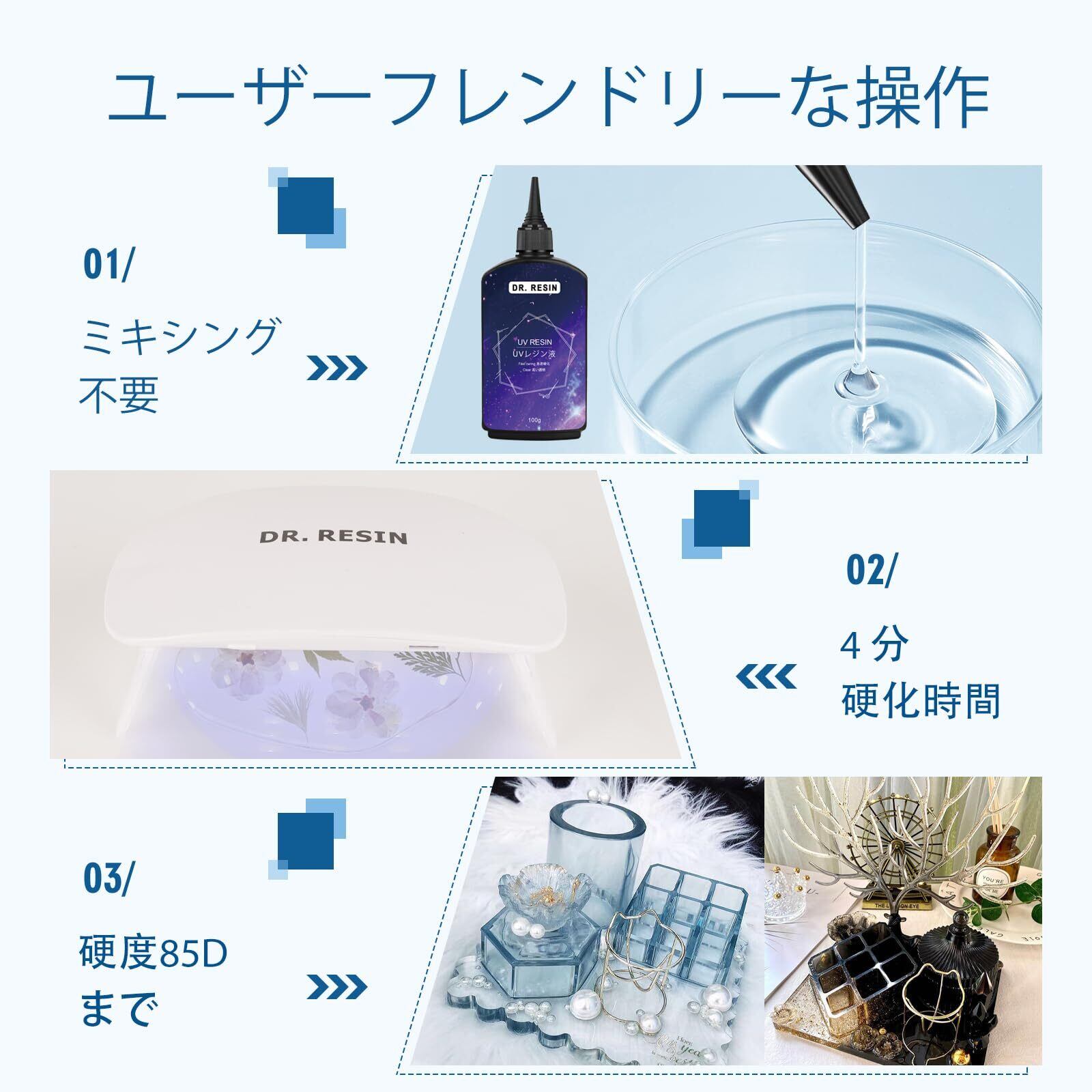 高い透明度と薄いにおい:レジン液の透明度がとてもいいです! DR. RESIN UVレジン液は黄色くなりにくいです。透明パルプを合わせると、色がとても鮮やかです!良質で無害な材料で作られています。臭気が少なく、安全で環境にやさしいことに驚くでしょう。そして時間が経つにつれて簡単に黄色くなることはありません