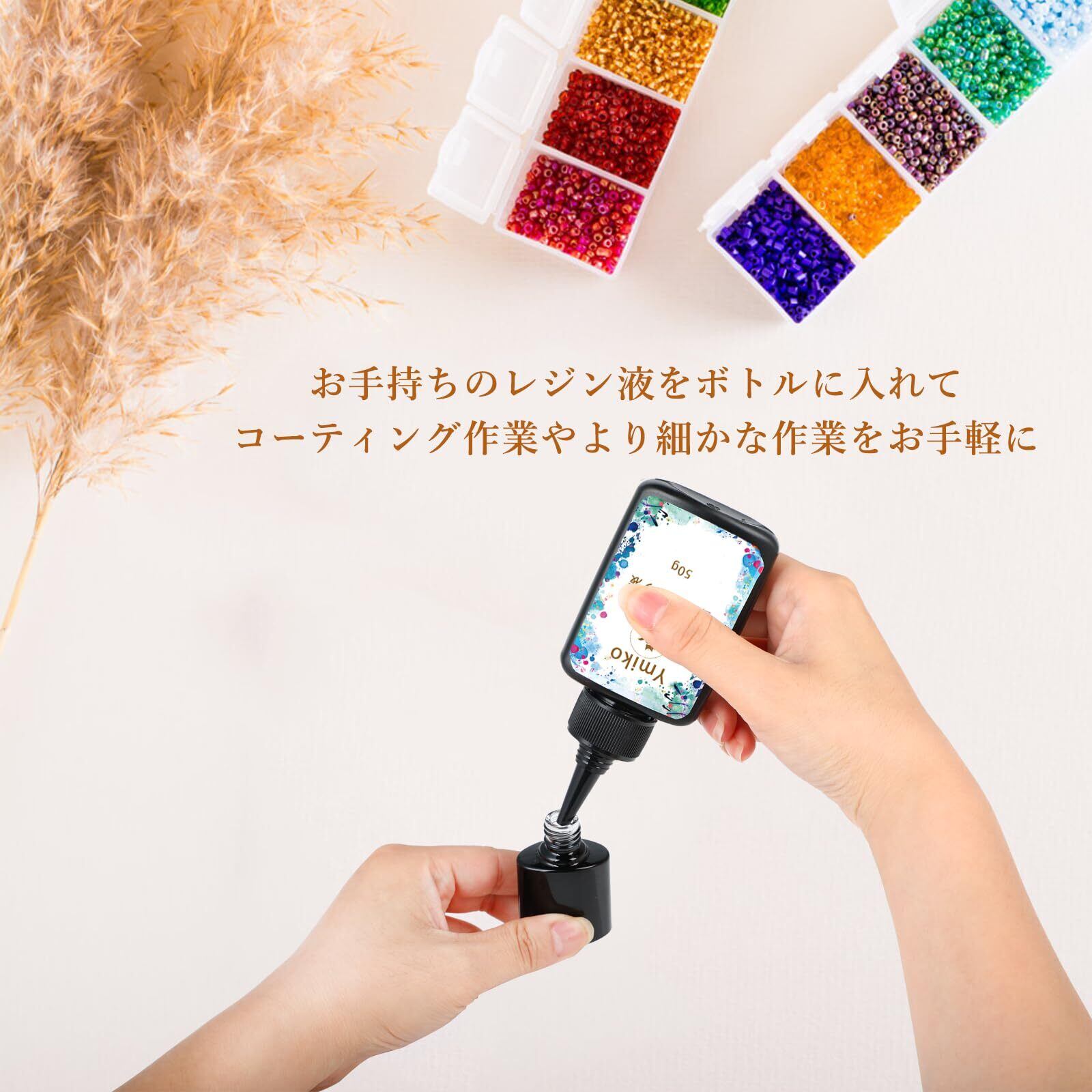 お手持ちのレジン液をボトルに入れてコーティング作業やより細かな作業をお手軽に。刷毛付きの遮光ボトルで保管時にレジン液が固まってしまう心配もありません。