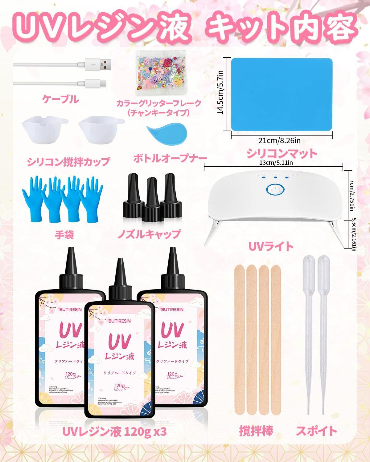 【2022最新】UVレジン セット 大容量 360g (120g*3本) 豪華19点 スターターキット 初心者向け 8W UVライト付き レジン液 アクセサリー作り ハンドメイド DIY 道具一式 低臭/クリアレジン/速硬化 クリスマス 誕生日 プレゼント