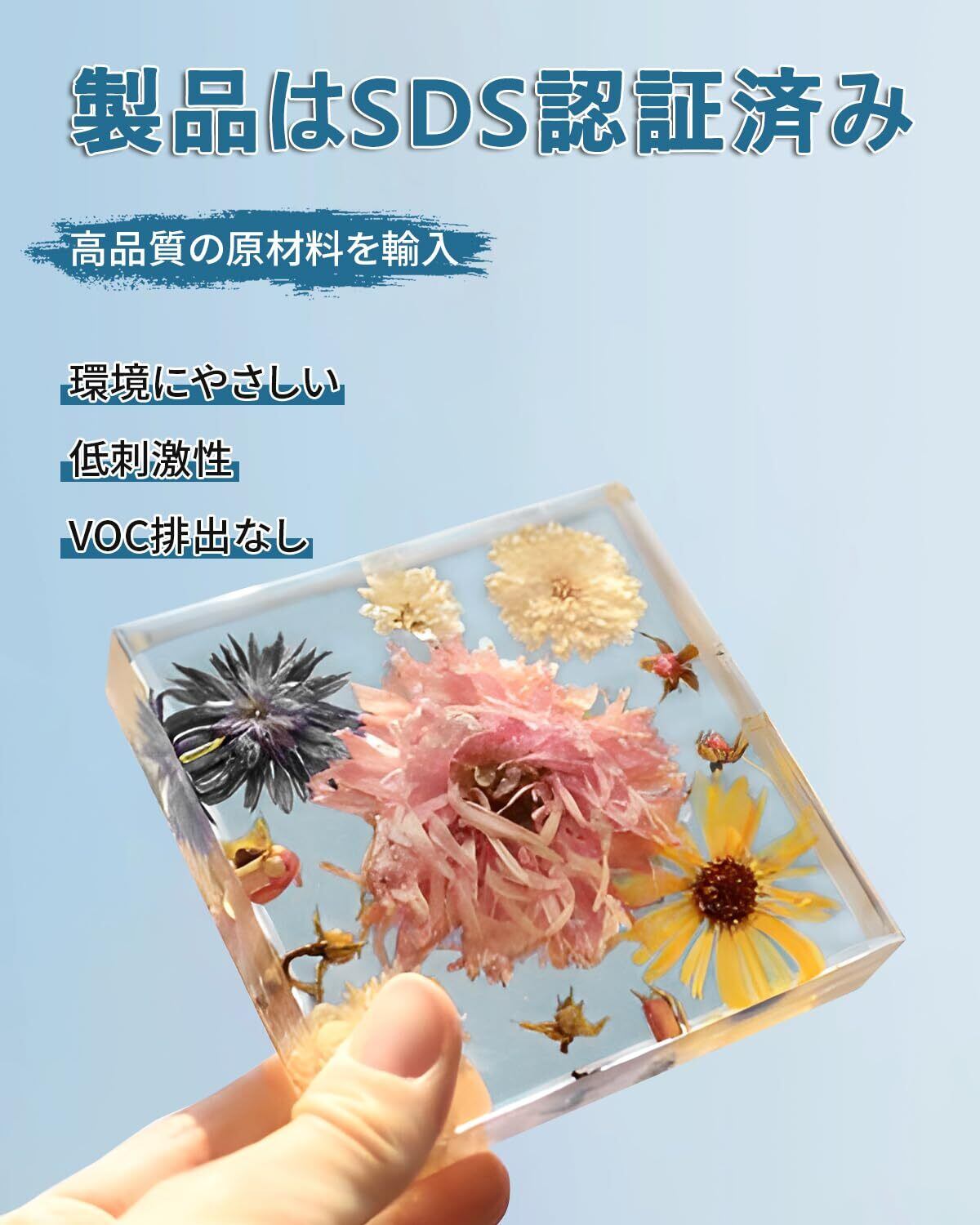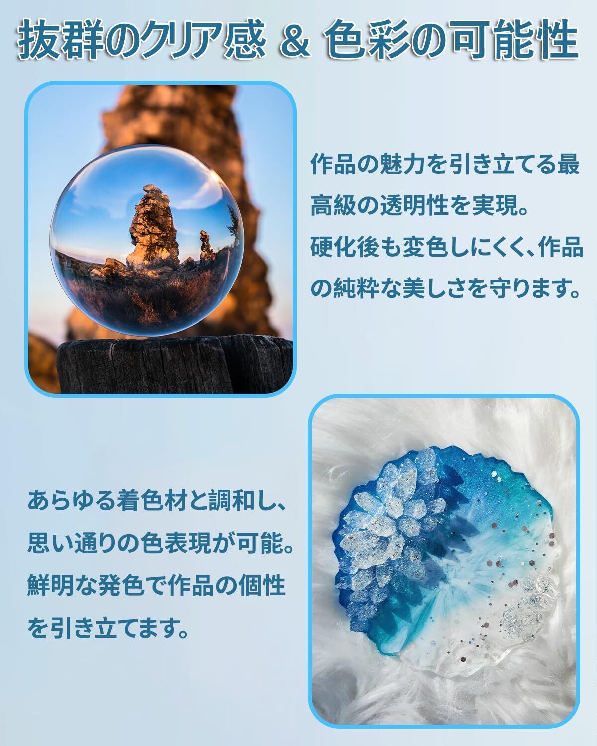 【気泡抜けやすさと着色剤との相性抜群】低粘度なので流動性よい気泡が抜けやすいです。混合後、3-5分間放置すると、自然脱泡。また、着色剤との相性も抜群で、鮮やかな色合いを実現します。