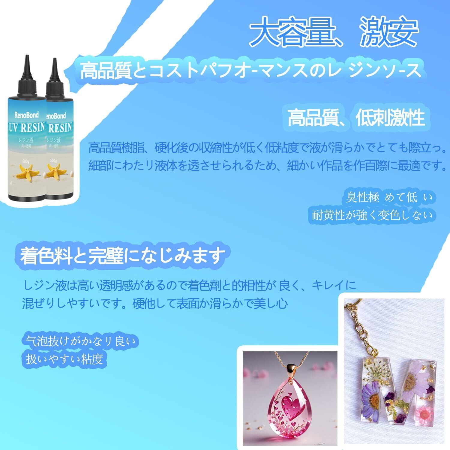 大容量UV レジン液: UVレジン液 1000g、そしてとても詳しい専門的な技術指導書がセットになっています。気泡が入らないようにする方法、作品により良い硬化結果を得る方法、その他プロフェッショナルな指示を学ぶことができます。 より美しくゴージャスで繊細なハンドメイドジュエリーを作りたいなら、この大容量のUVレジン液を選べば、レジン液が足りなくなる心配はありません。