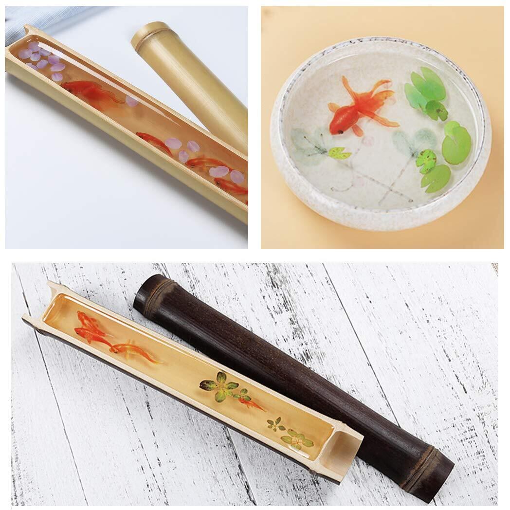 【新春セール】レジン 封入素材 フィルム シート 金魚イラスト 夏 和風金魚鉢 水草 浮草 桜 花びら