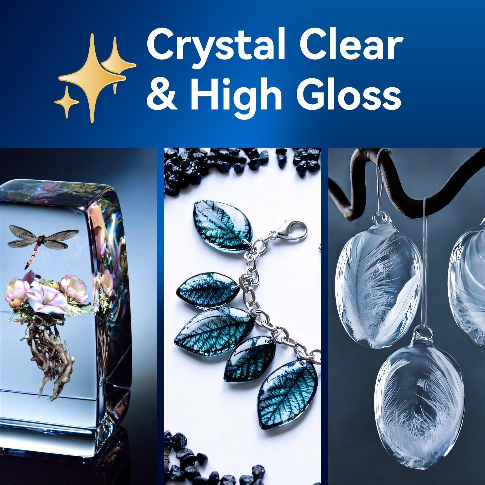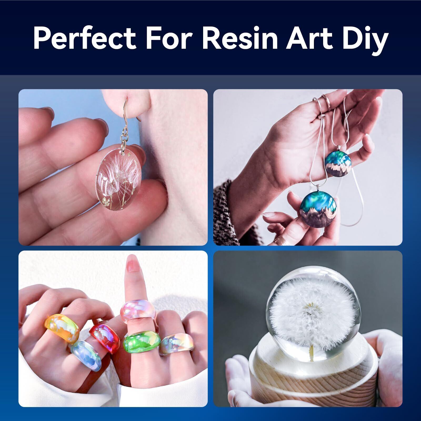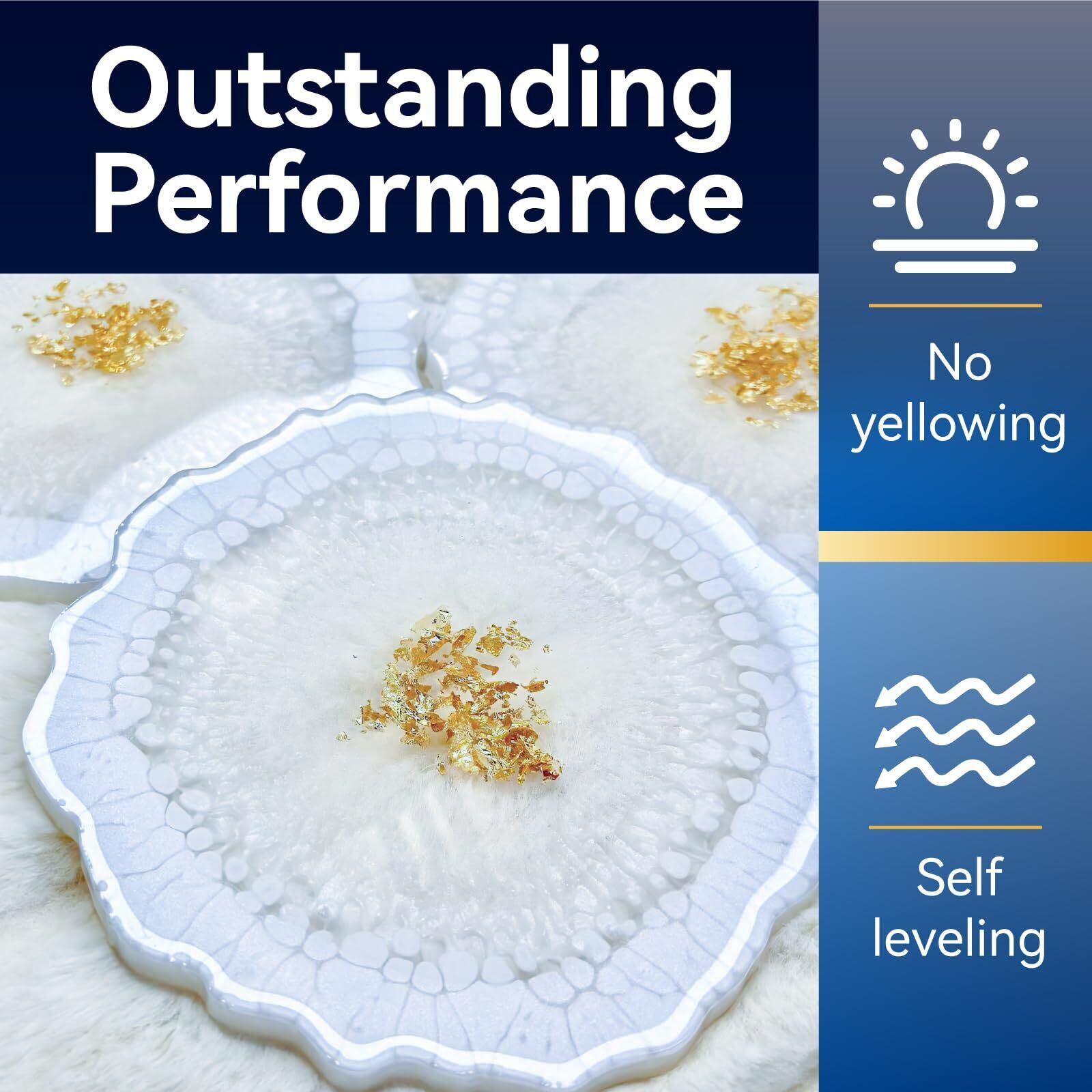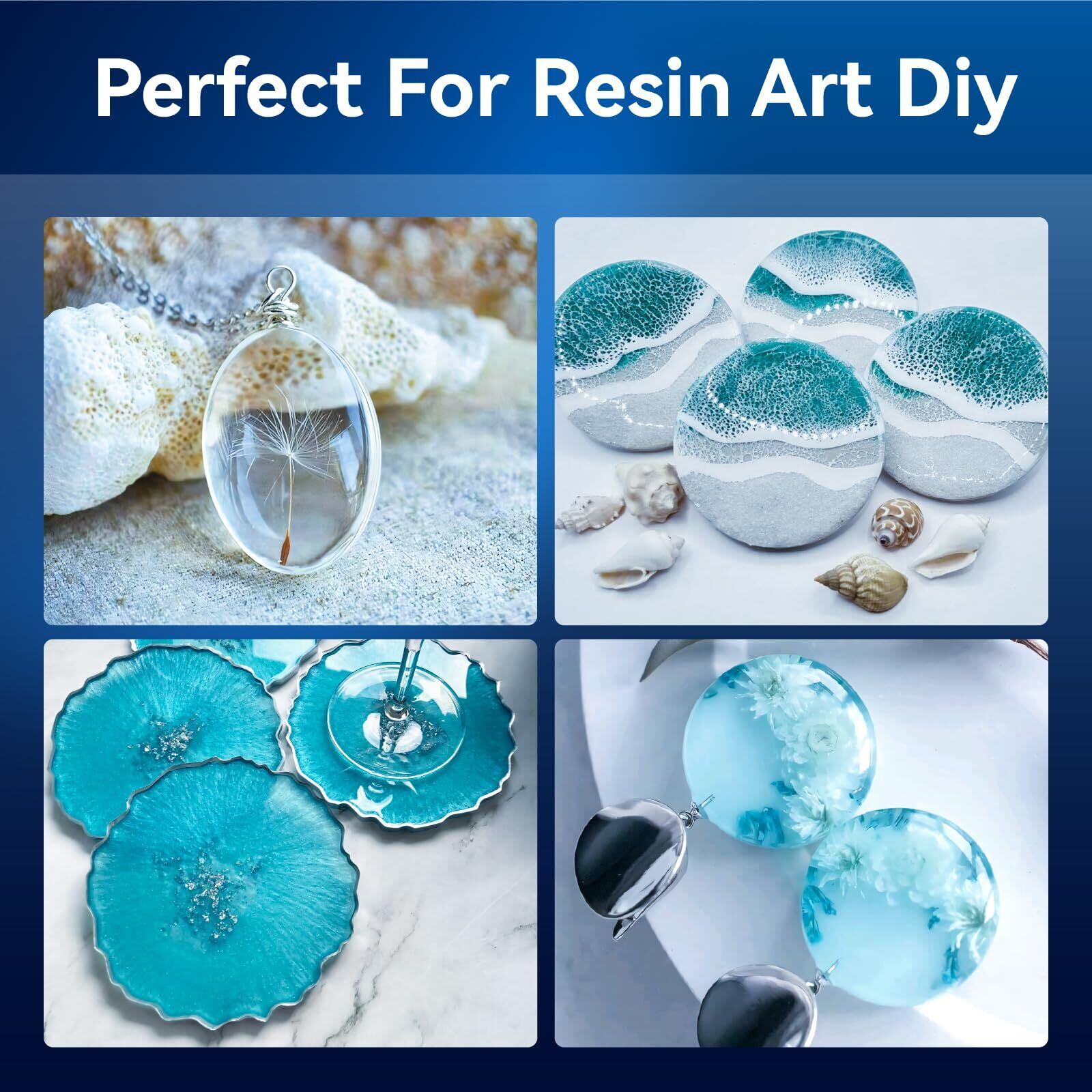 幅広い用途:樹脂は基本的に無臭で、混合後に煙はほとんど発生しません。より快適にご使用いただくために、換気の良い場所で作業してください。自己消泡処方により、使用中に気泡を自動的に除去し、固化後に透明で気泡のない仕上がりを実現します。鋳造やコーティング用途に最適で、レジンアート、ジュエリー、アートワーク、アクリルポアリング、レジンモールドなどに使用できます。