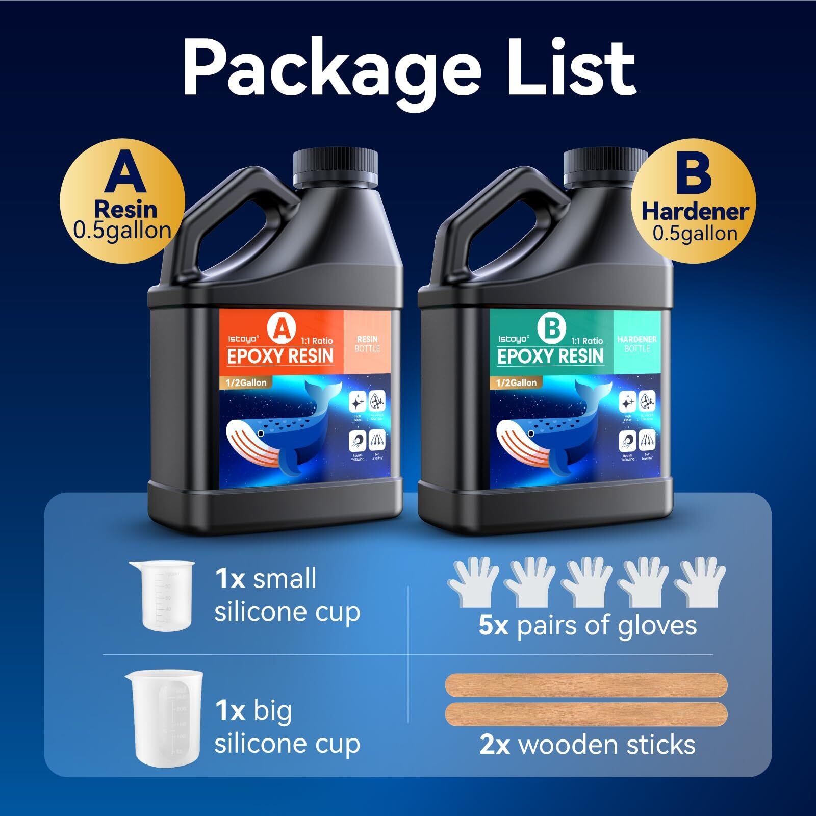 ISTOYOエポキシ樹脂2液性 4.3 kg/128OZエポキシ樹脂セット 大容量レジン液体積比1:1 高い透明 高い光沢 黄変しにくい 樹脂 立体作品用エポキシレジン、木材のキャストコーティング、樹脂型