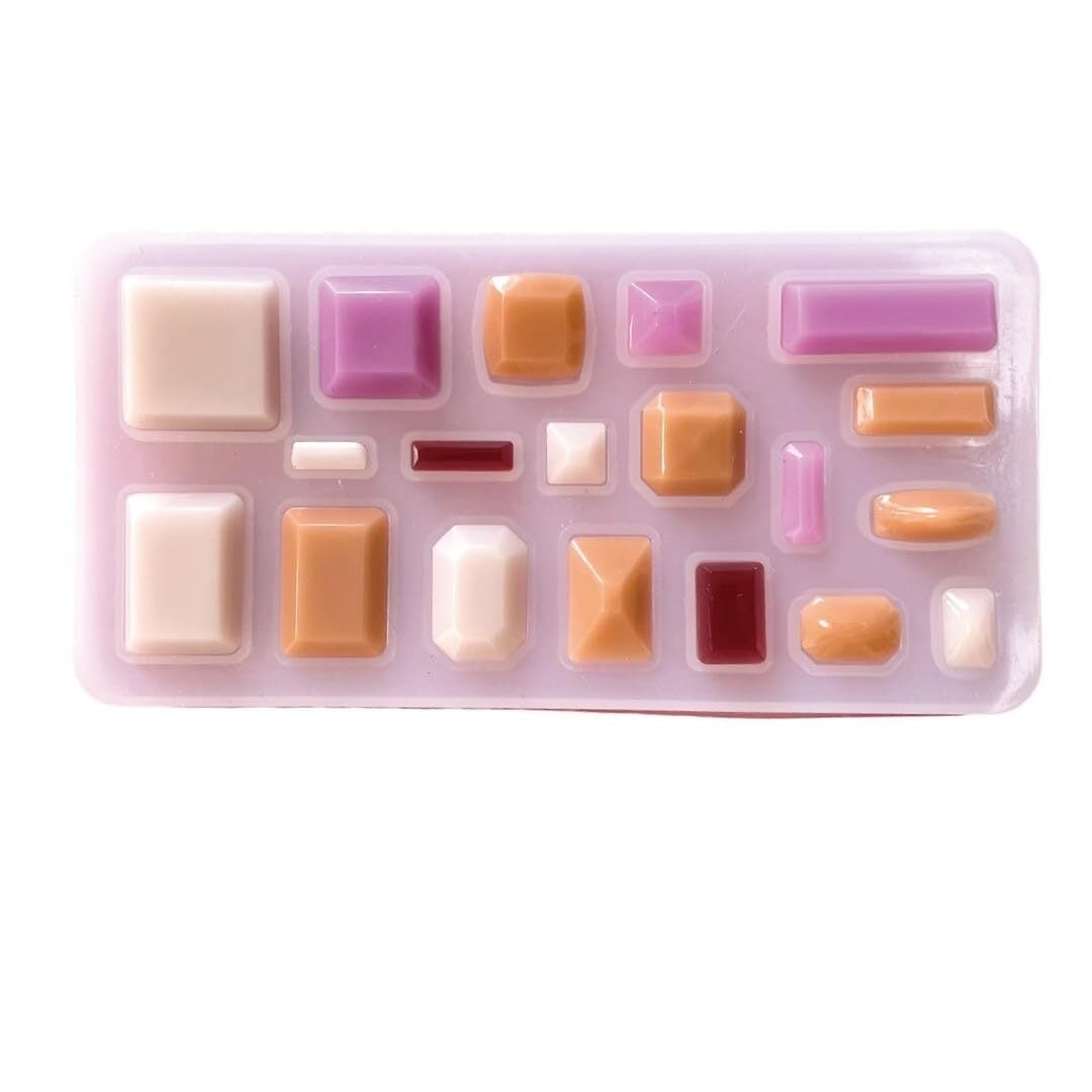 外サイズ18.8×9.3×1.15mm 長方形、正方形、宝石型などのパーツをUVレジンやエポキシレジンで作成できる やわらかめのシリコンモールドです。