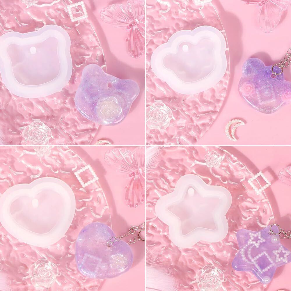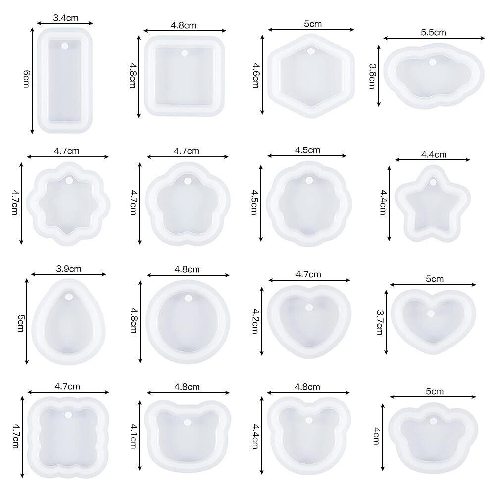 サムコス シリコンモールド 16個セット 穴あき ハート 丸 正方形 ソフトモールド エポキシ樹脂 UVレジン DIY ピアス ネックレス ペンダント キーホルダー 樹脂工芸品 アクセサリー 作成 抜き型 再利用可能