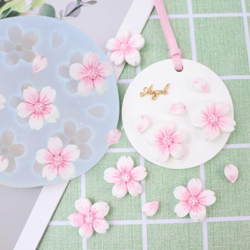 【商品について】立体のさくらが作れるシリコンモールド2個セットです。2つのサイズのさくらとさくらの花びらが作れます。アクセサリーパーツやキーホルダーにもミニサイズのさくらはデコモールドとしても UVレジン、エポキシ樹脂、樹脂粘土などに ご利用いただけるシリコンモールドです。