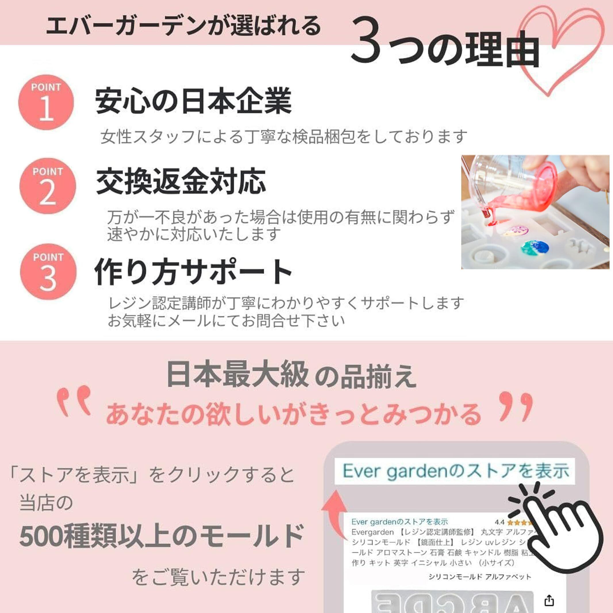 【豊富な品揃え】 当店は400種類以上ののシリコンモールドを揃えております。あなたの探していた商品がきっと見つかります。商品ページ左上の『Ever garden』をクリックして頂くとストアをご覧頂けますので、ゆっくりとご覧くださいませ。Ever gardenはあなたの素敵なハンドメイドライフを応援します。