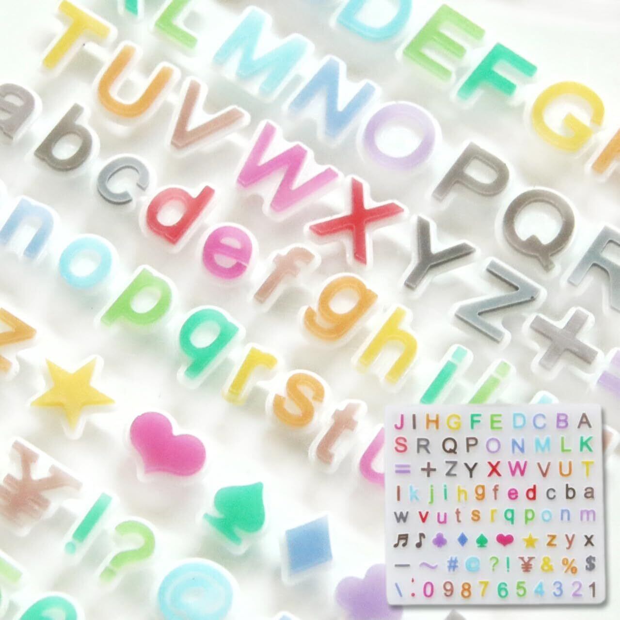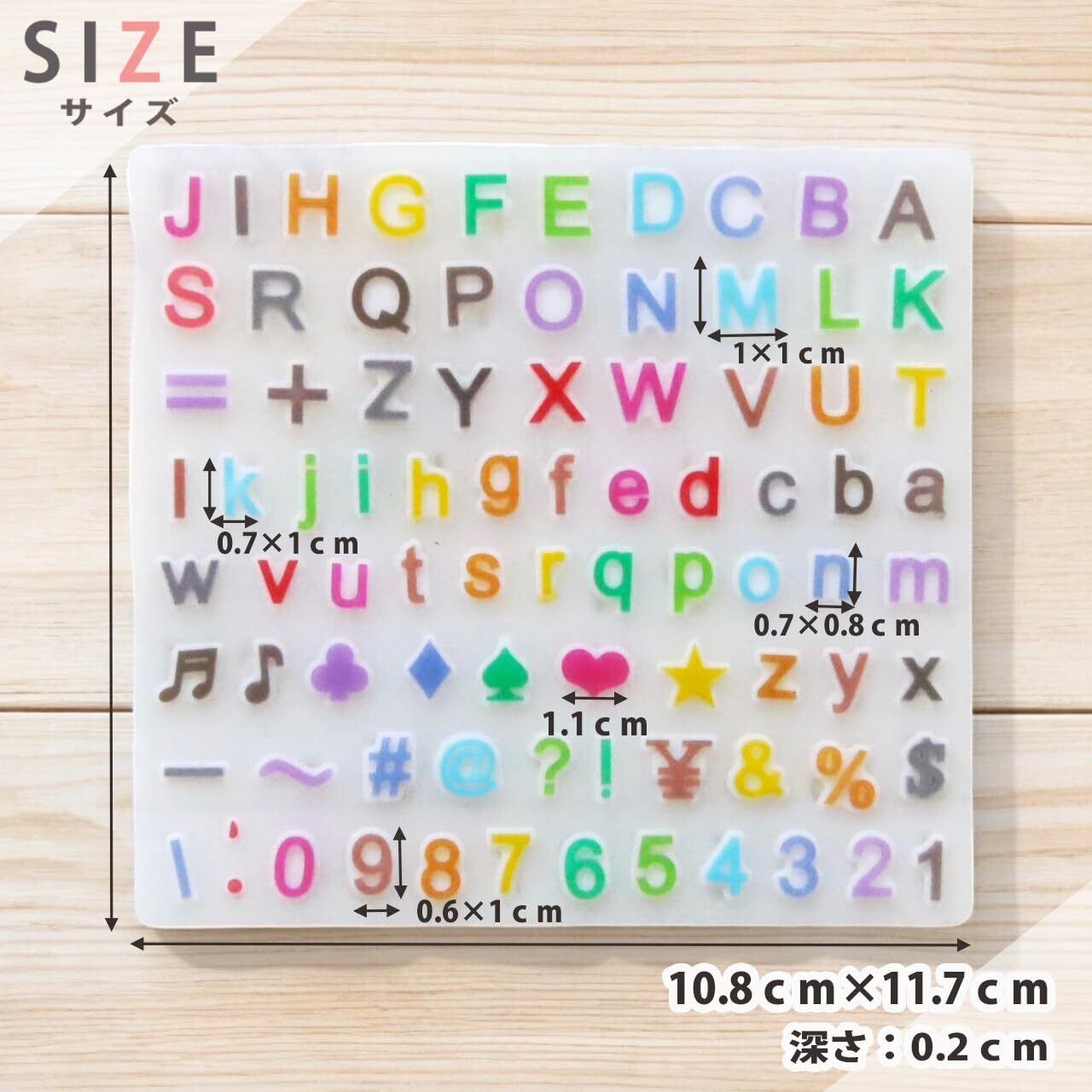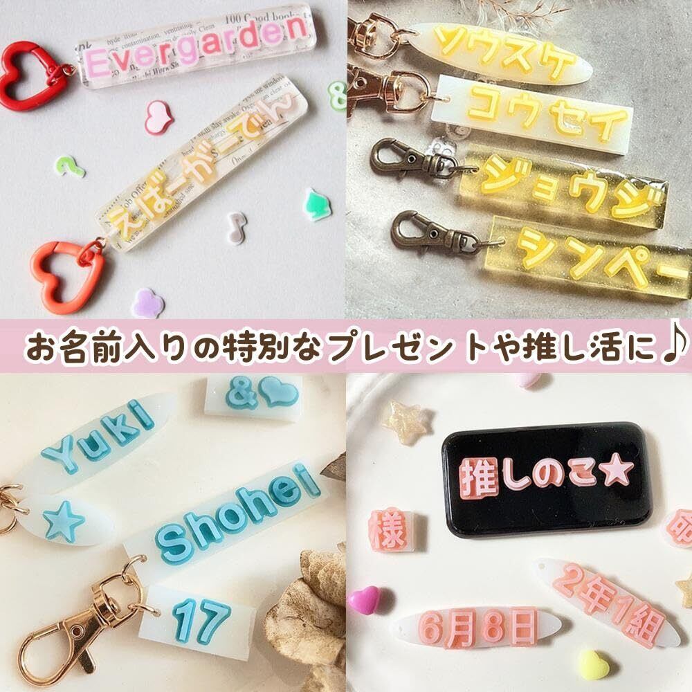 【商品について】アルファベットの大文字・小文字・数字・ハート・音符・ダイヤ・ハテナマーク等の記号が作れるシリコンモールドです。かわいいフォントのアルファベットの大文字・小文字・数字に加えてかわいいパーツや記号が一度に作れます お名前フォルダーや推し活、トレカデコ等のデコパーツ、オタ活にも プレゼントにも最適です。鏡面仕上げでツルツルの綺麗な作品が作れます。半透明でデザインも確認しやすい高品質なシリコンモールドです。丈夫で柔らかく取り出しやすく、初心者の方でも簡単に取り外せます、 UVレジン、エポキシ樹脂、樹脂粘土などにご利用いただけます。