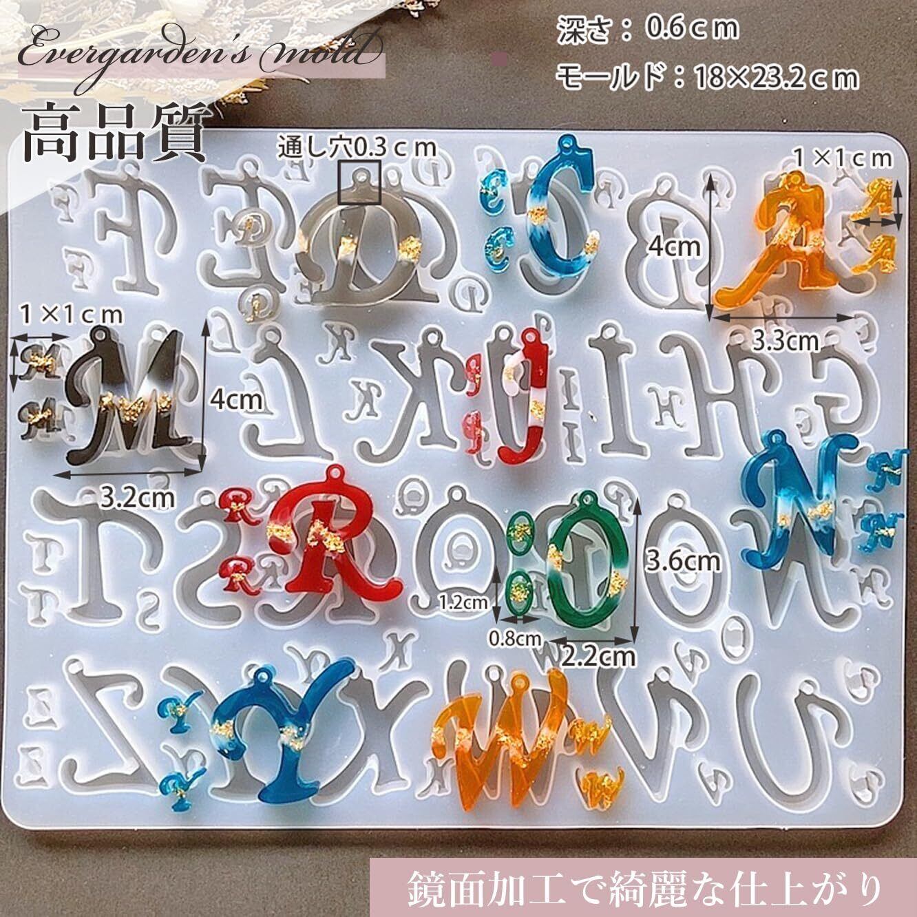Evergarden アルファベットシリコンモールド レジン アクセサリー パーツ イヤリング ピアス キーホルダー シャカシャカ シリコン モールド キャンドル アロマストーン 石膏 手作り 樹脂 粘土 シリコン型 型 キット ハンドメイド 鏡面 仕上げ