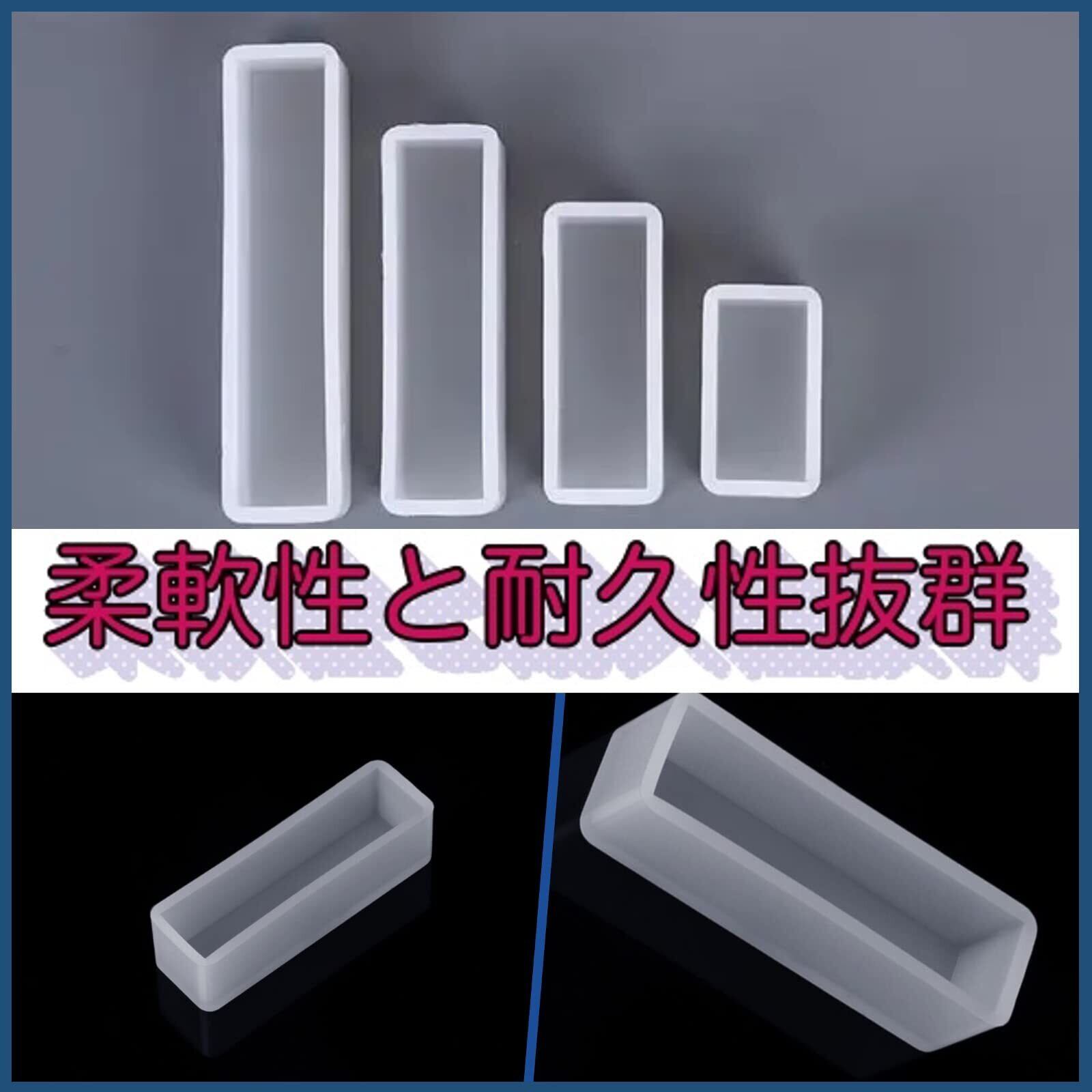 【4サイズセットで使いやすい】S・M・L・XLの長方形シリコンモールド4点セットで、作品サイズに合わせた使い分けが可能です。アクセサリー作りやクラフトにぴったり。