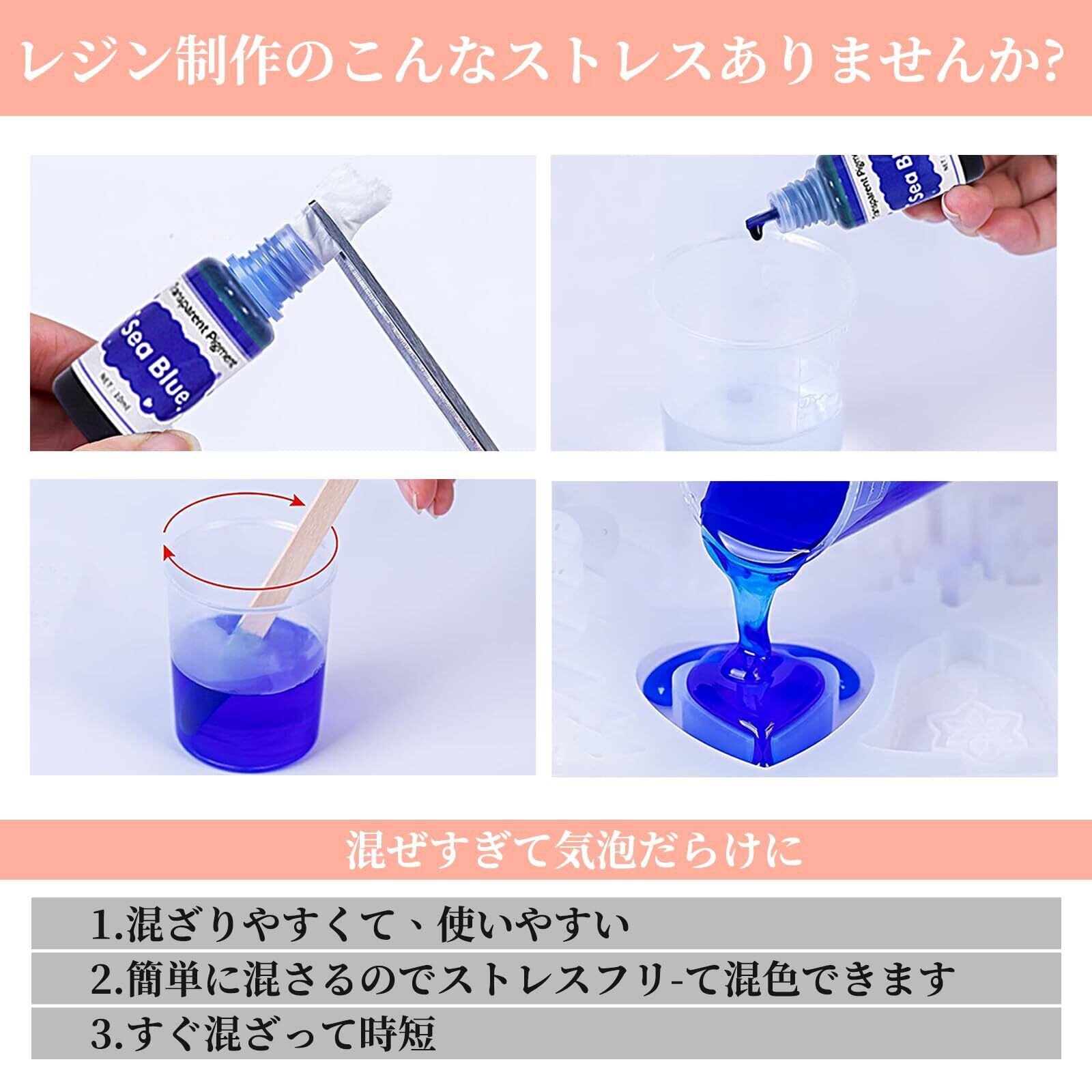 レジン 着色剤 透明色 24色*10ml レジン液 エポキシ樹脂染料 高濃度樹脂着色剤 樹脂着色用 ジュエリー製作 レジン セット UVレジン 塗料 工芸用 (24色)