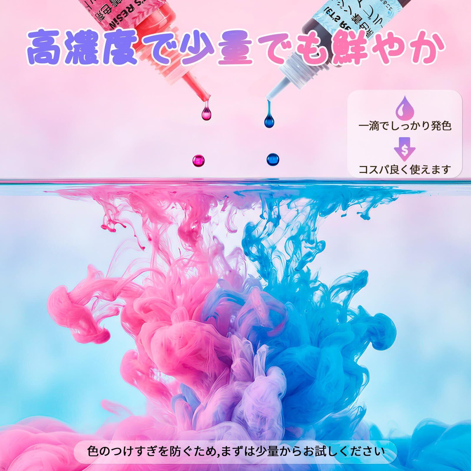 【使いやすい細口ボトル設計】細口ボトル仕様により、レジン着色剤の量を正確にコントロール可能。ムダなく、細かい作業もスムーズに行えます。使用前はよく振り、付属のボトルオープナーで開封してください。少量ずつ分けて使用することで、より美しい仕上がりになります。