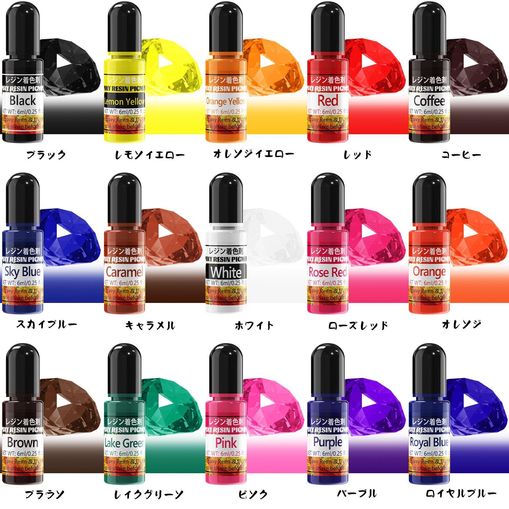 【使いやすさ】細口ボトルなので、レジン 着色剤の使用量を正確にコントロールできます。使用前に樹脂顔料をよく振ってから、ボトルオープナーで開けてください。少量を数回に分けてご使用ください。使用後は、直射日光を避け、涼しく乾燥した場所に保管してください。