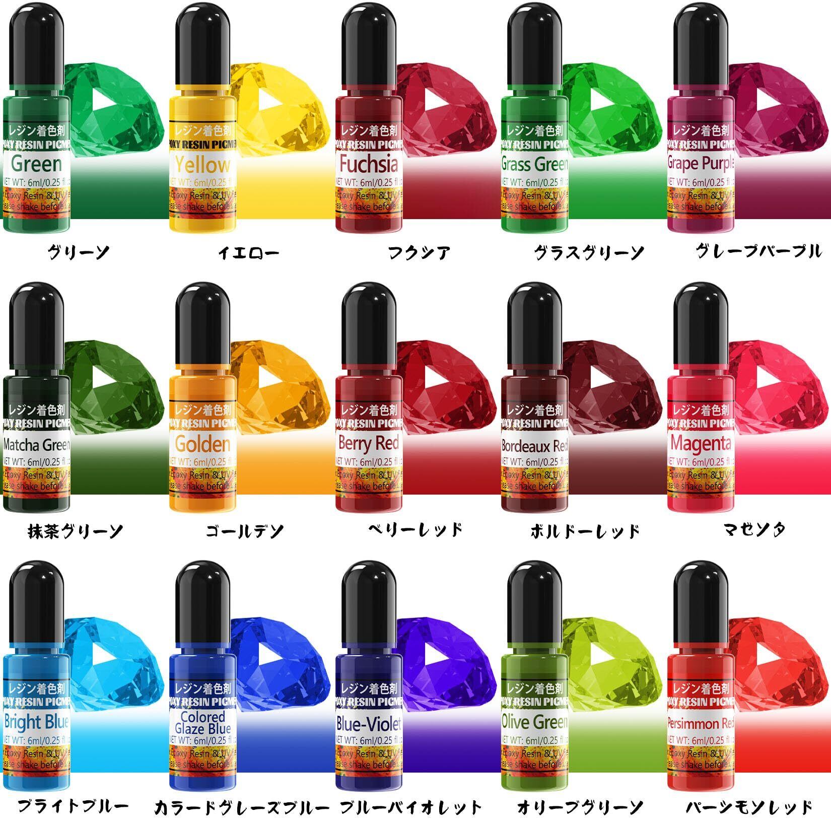 レジン 着色剤 30色 透明色 高濃度 エポキシ樹脂顔料 レジン液やエポキシ樹脂の着色、ジュエリー作り、手工芸品などに使用されます ボトルオープナー4個付き