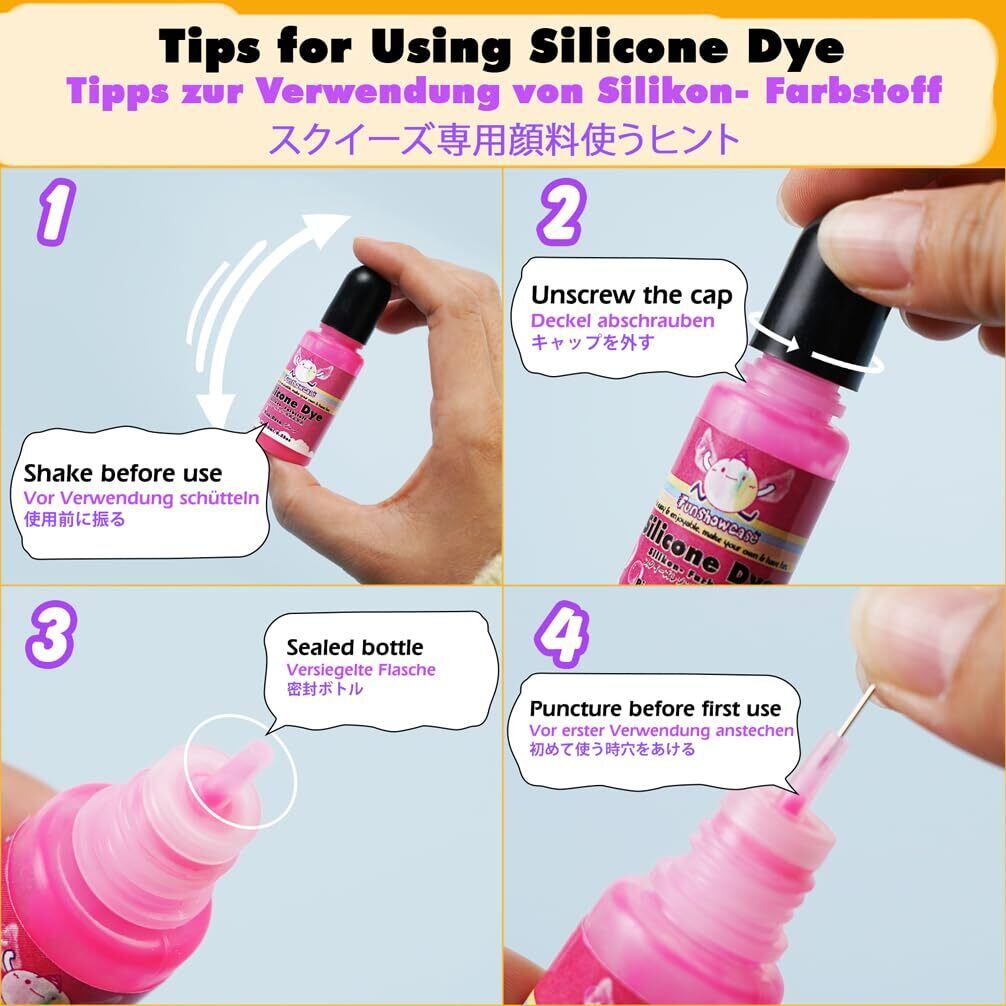 混ぜると硬化不良と形成不良にならないので、スクイーズだけではなく、シリコーンゴム、柔らかいジェル、ゴム型、伸縮性のあるパテ、キャンドルなどに適用し、シリコン工芸やDIYアートプロジェクトに最適です。:スクイーズレジン、ゴム型作り、伸縮性のあるパテ、スライム、石鹸、成形可能なプラスチック、キャンドルなどのシリコン工芸とDIYアートに欠かせない着色剤セットです。