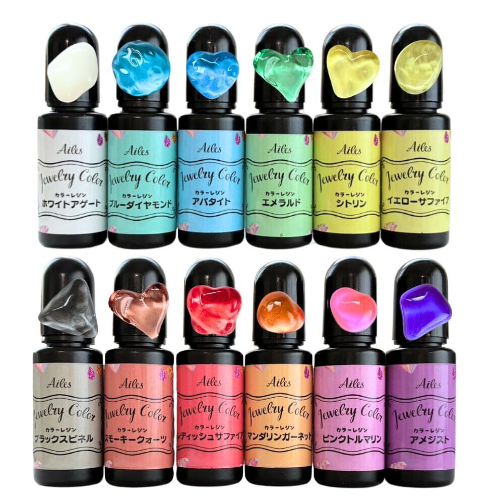 まるで宝石みたいな透明感と美しい発色! 調色で悩まない、Ailesエールオリジナルのジュエリーレジンが登場 おうちで手軽にアクセサリーや小物が作れるカラーレジンです。