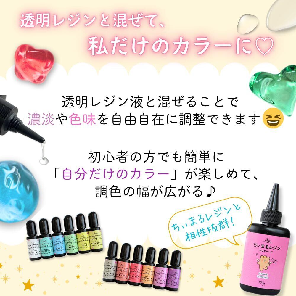 【数量限定】レジン 着色剤 着色液 UVレジン着色 ジュエリーカラー クリア そのまま流して使う シリコンモールド対応 10mlx12色