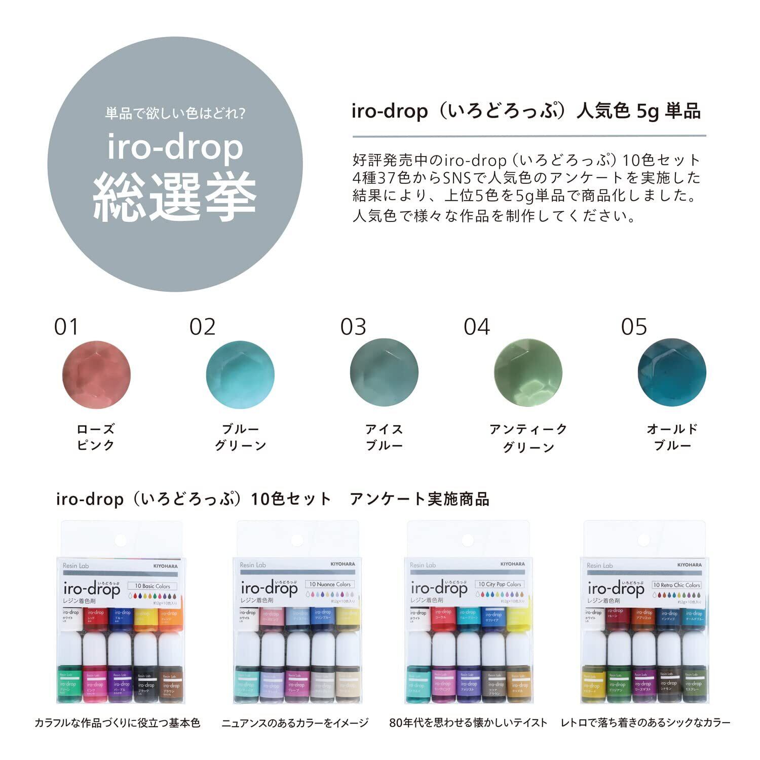 好評発売中のiro-drop( いろどろっぷ )10色セット 4種37色からSNSで人気色のアンケートを実施した結果により、上位5位を5g単品で商品化しました。