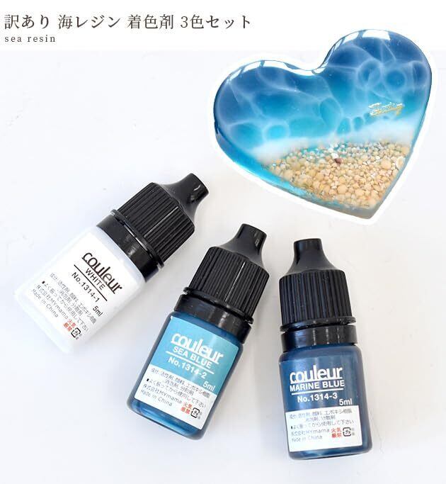 MYmama UVレジン染料 海 レジン着色剤 3mL × 3本 セット 白/青/水色 レジン作品用 マリン アクセサリー 手芸用品