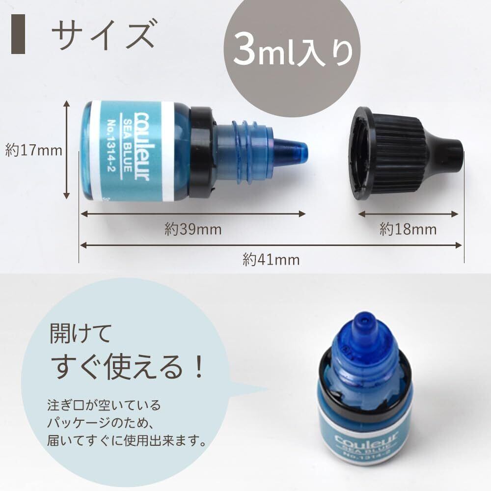 使用前にキャップを締めた状態で振ってからお使い下さい。着色剤を入れすぎますと硬化不良をおこします。直射日光の当たらない場所に保管してください。お使いいただくレジン液の種類によっては多少色の出方が変わる場合がございます。