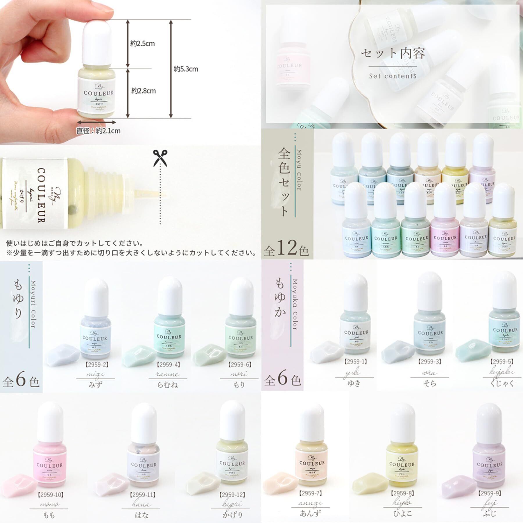 【新着商品】MYmamaオリジナル レジン着色剤 もゆ 韓国風ニュアンスカラー 12色 レジン作品用 UVレジン染料 手芸用品 (6色セット)