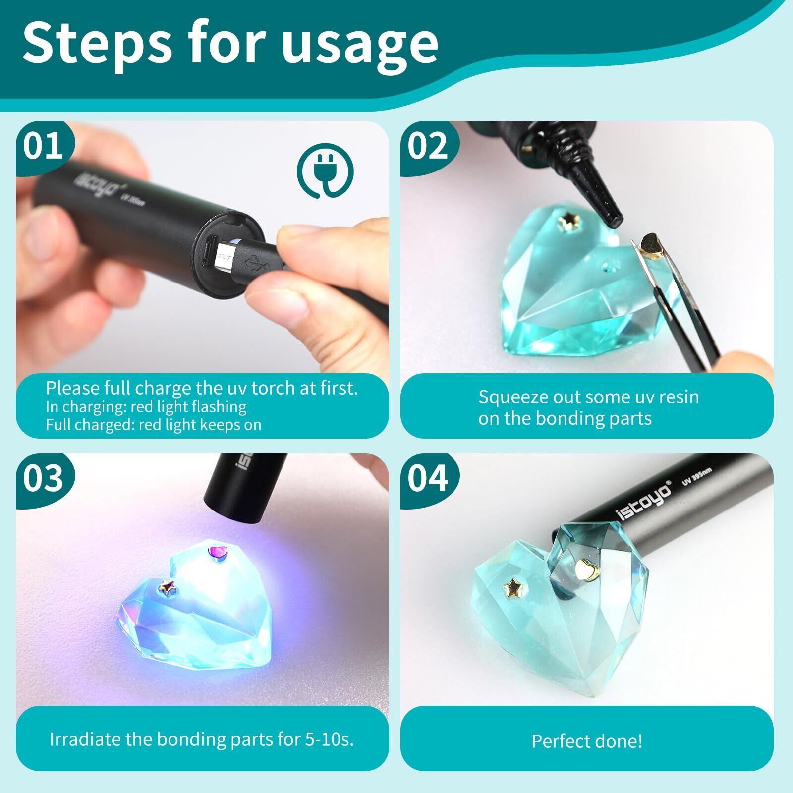 高性能uv樹脂:ISTOYO接着uv樹脂はuv懐中電灯で固化する前に液状を維持し、修正と成形に便利である。硬化後、それは無味、透明、黄変せず、硬い。芸術創作に完璧な接着剤を提供し、日常生活に役立ちます。
