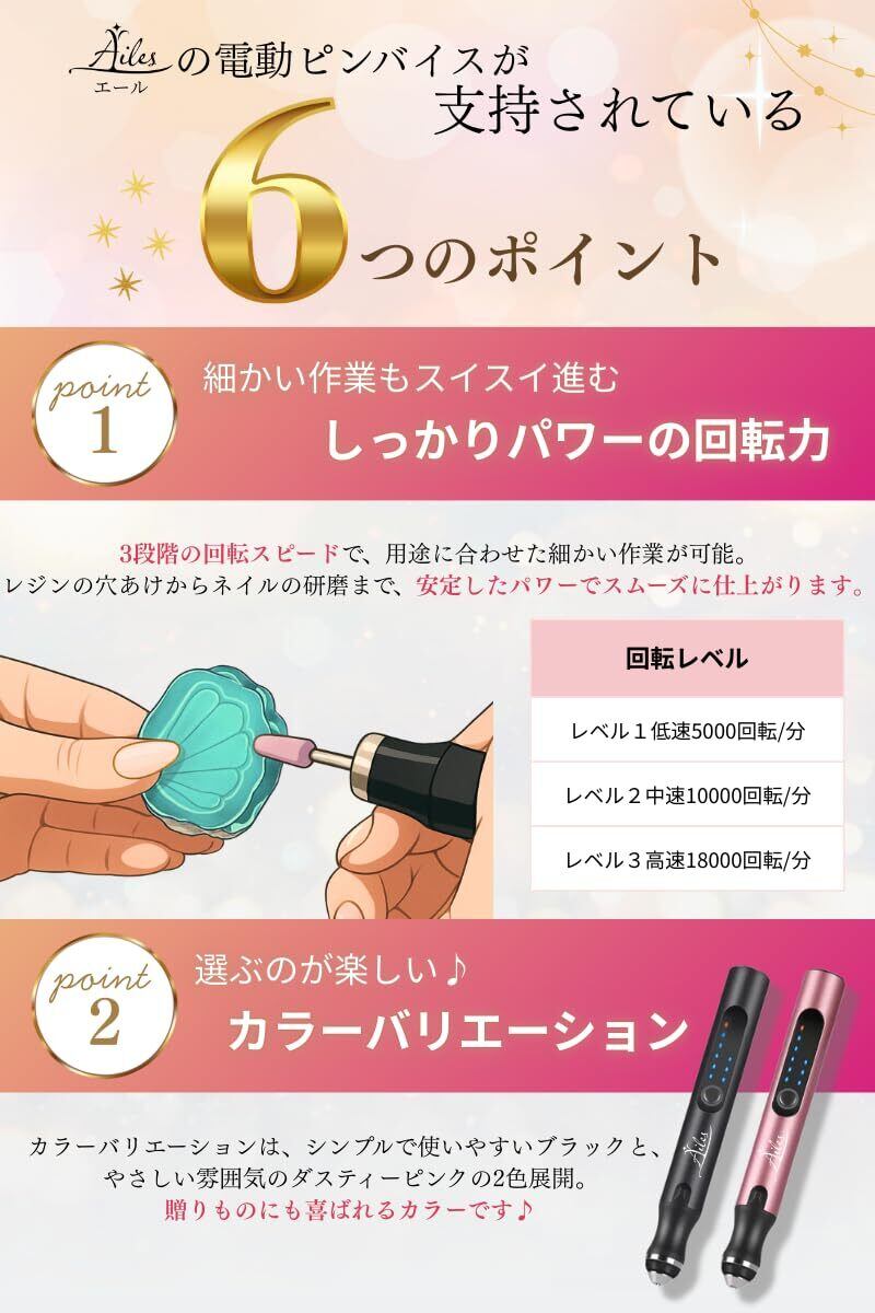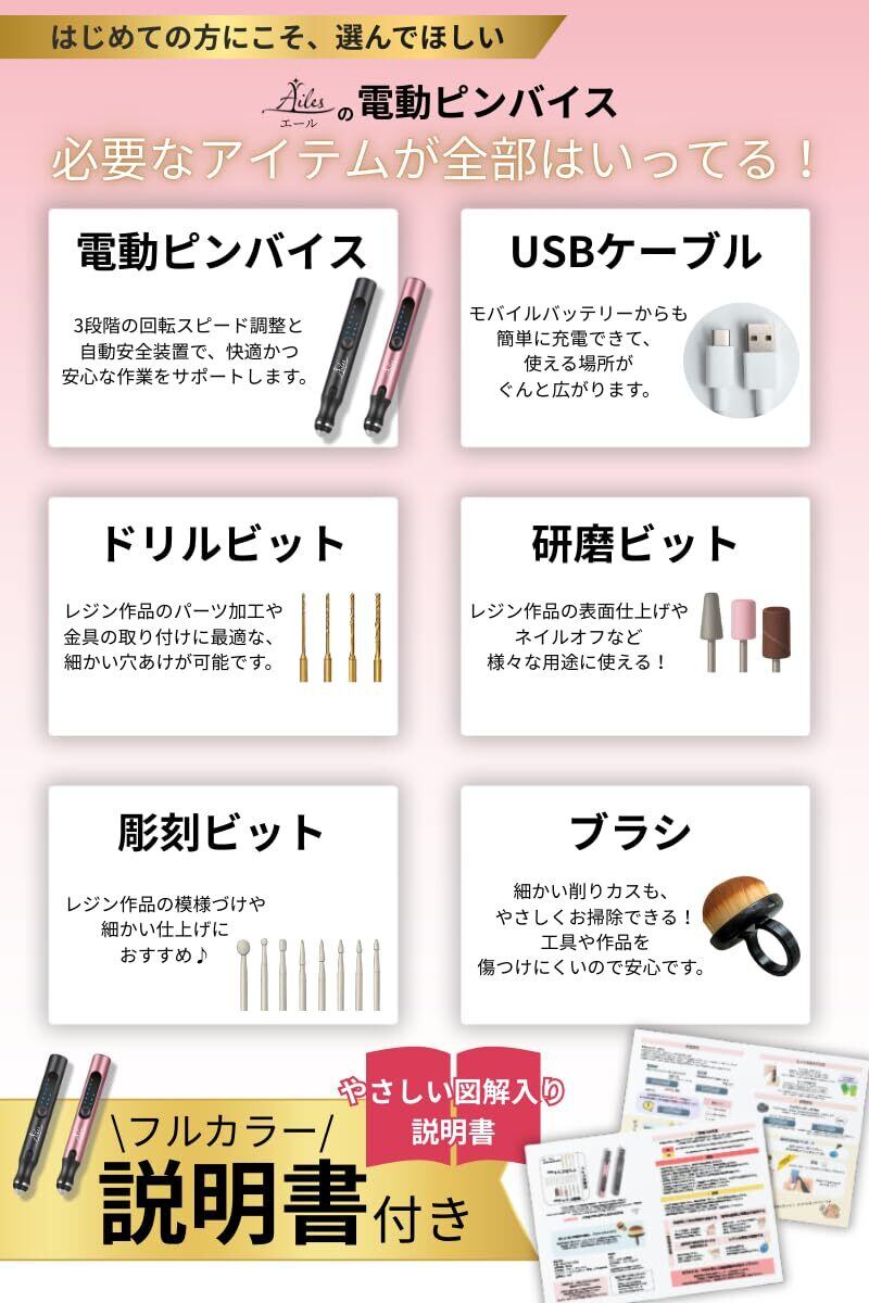 Ailes(エール) 電動ピンバイス レジンクラフト レジン 穴あけ 電動ドリル 穴あけドリル 充電式 USB コードレス コンパクト ミニブラシュ付き(ブラック)