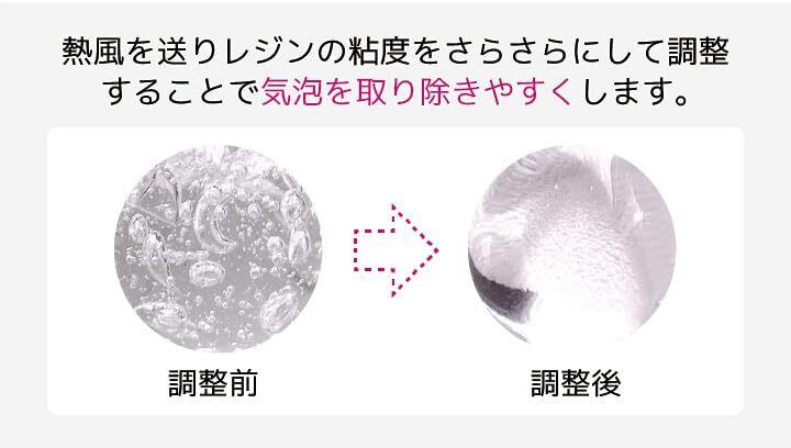 レジン液や、ジェルキャンドルのしつこい気泡もヒーターを使うとあっという間に消せる優れもの。 もちろん、スタンプのエンボス加工にもご使用いただけます。