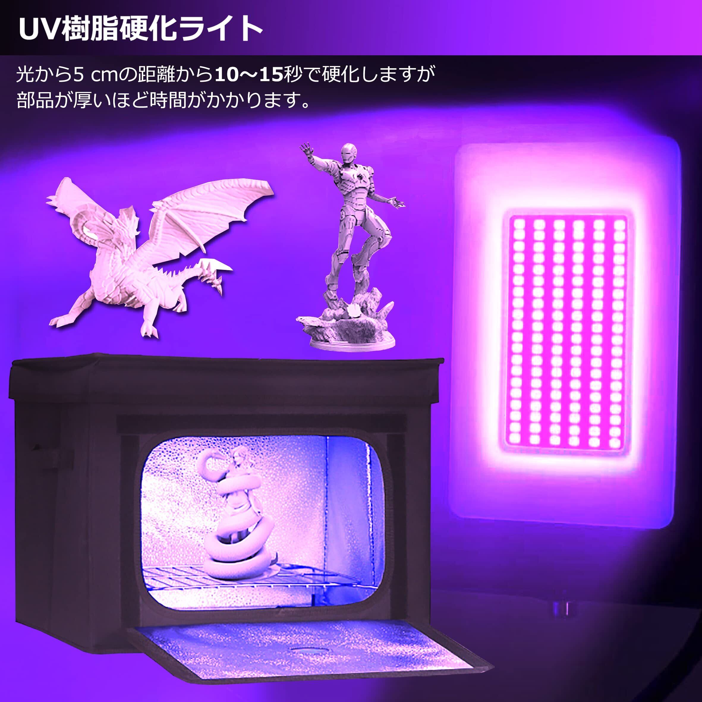 【UVレジン硬化】UV LEDライトは132つの高出力390-405nm UV LEDを使用して、UV樹脂プリントをすばやく硬化し、通常よりも短い時間でオブジェクトを効率的に硬化させます。長時間直接見たり、露出した皮膚に長時間触れたりしない限り、皮膚や目などに悪い影響しません。
