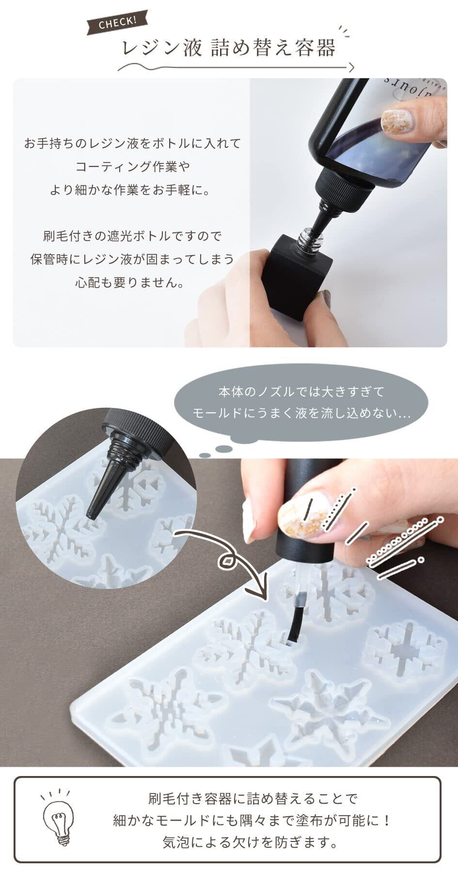 ■ご注意:・空ボトルのみの販売です。 ・レジン液は室温が低いと固くなります。詰め替えの際に本体のレジン液が出にくい場合、エンボスヒーター等で温めると詰め替えやすくなります。 ・レジン液の詰め替えの際は、ご使用のレジン液に記載されている使用方法や注意事項をご確認の上、ご利用くださいますようお願い申し上げます。 ・ロットにより、サイズや色味、デザインが異なる場合がございます。 ・画像では100%同じお色を表現することは出来ません。実際のイメージと異なる場合がございます。 上記内容の返品交換は承ることができません。 ご了承の上、ご購入いただきますようお願い申し上げます。