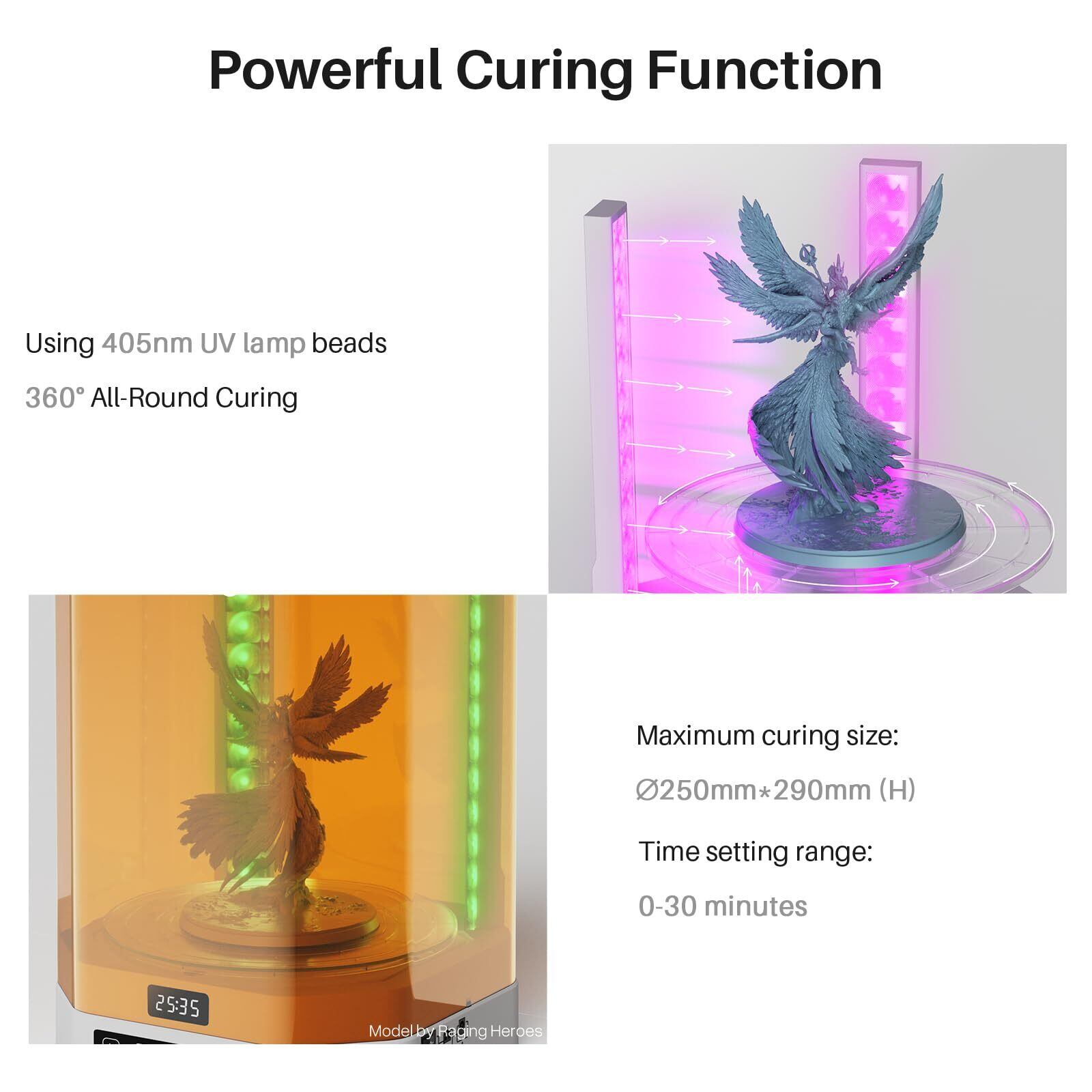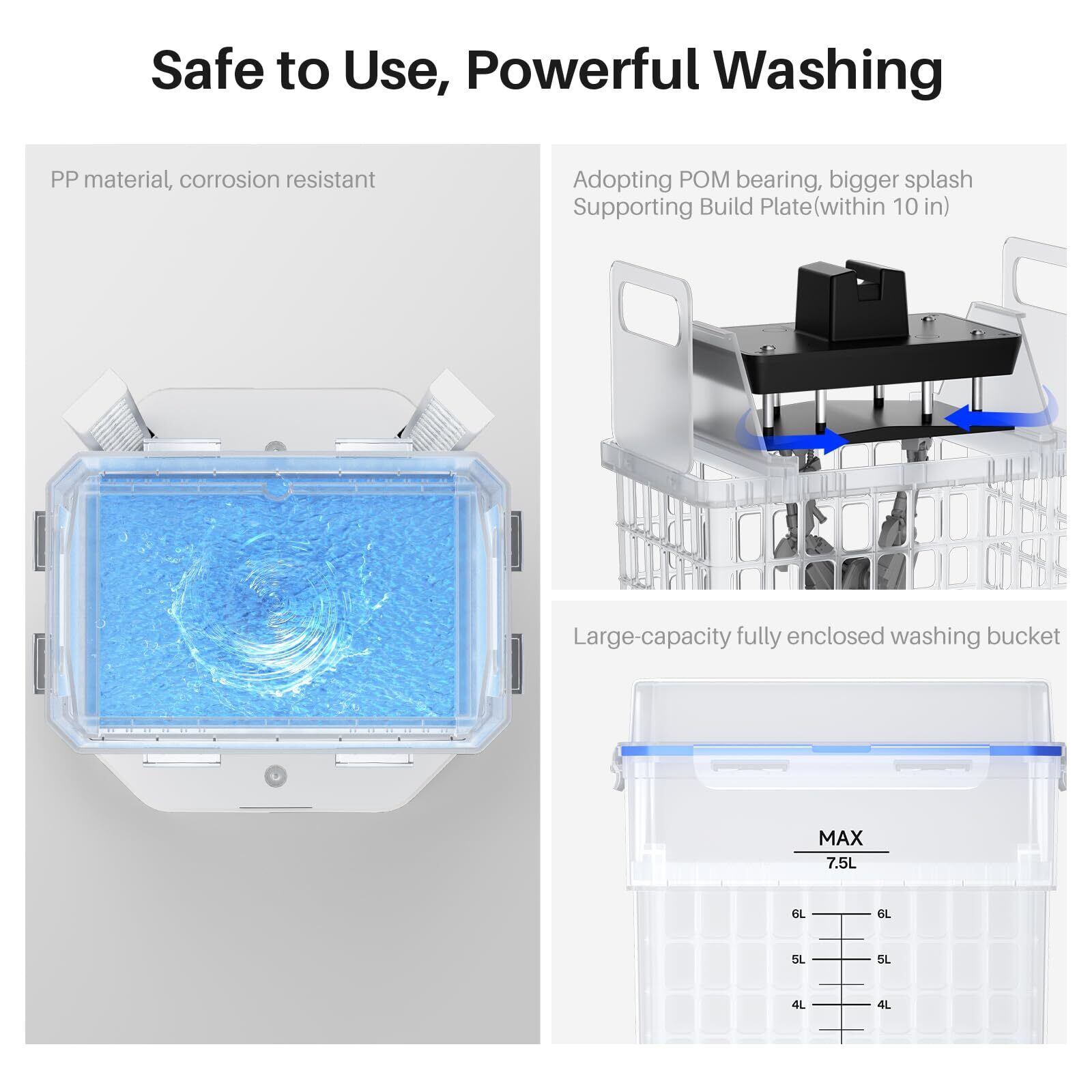 【サイズアップグレードで大容量】Mercury Plus V3.0にアップグレードして容量を増やし、効率を最大化しましょう。V2.0の2.1倍の7.5Lの洗浄容量と5.6倍に拡大された硬化サイズで設計されたこのマシンは、より大きなモデルや一度に複数のプリントを簡単に処理できます。