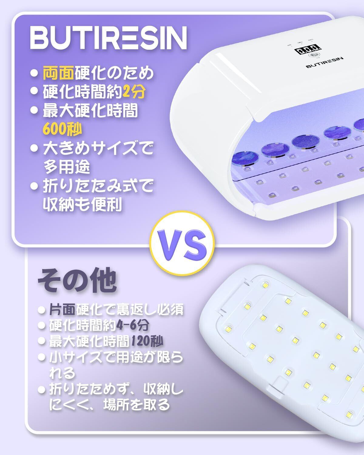 【新春セール】UVライト レジン用 48W 両面照射 360度光源 48個LED搭載 4段階時間調節 (60秒・180秒・300秒・600秒) UV遮光板付き 折りたたみ式 コンセント直差し式 2-IN-1 レジン硬化用 多用途DIY対応