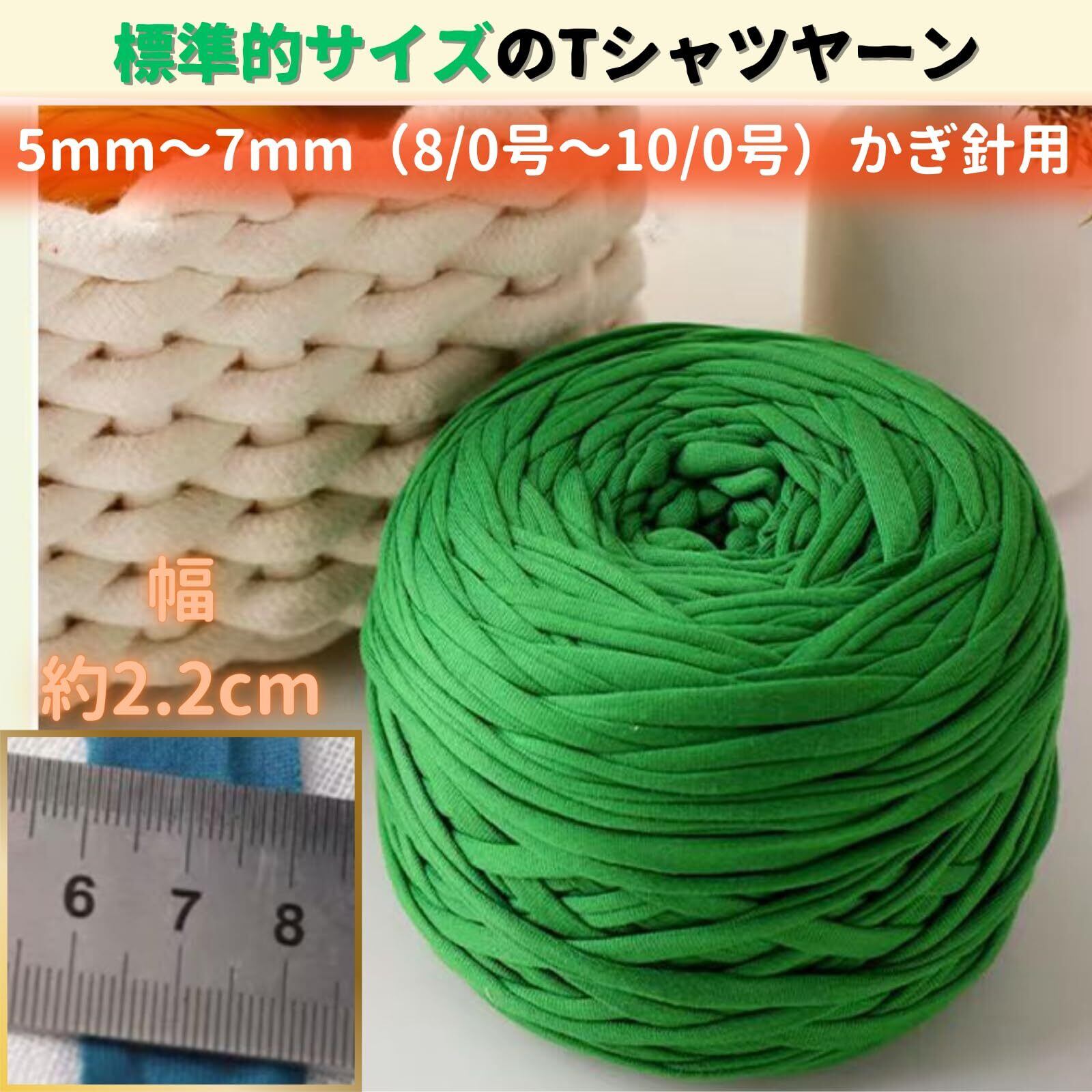 【商品詳細】<Tシャツヤーン 1個>長さ:約100m。幅:2.2cm。5mm~7mm(8/0号~10/0号)のかぎ針用。*誤差はあります