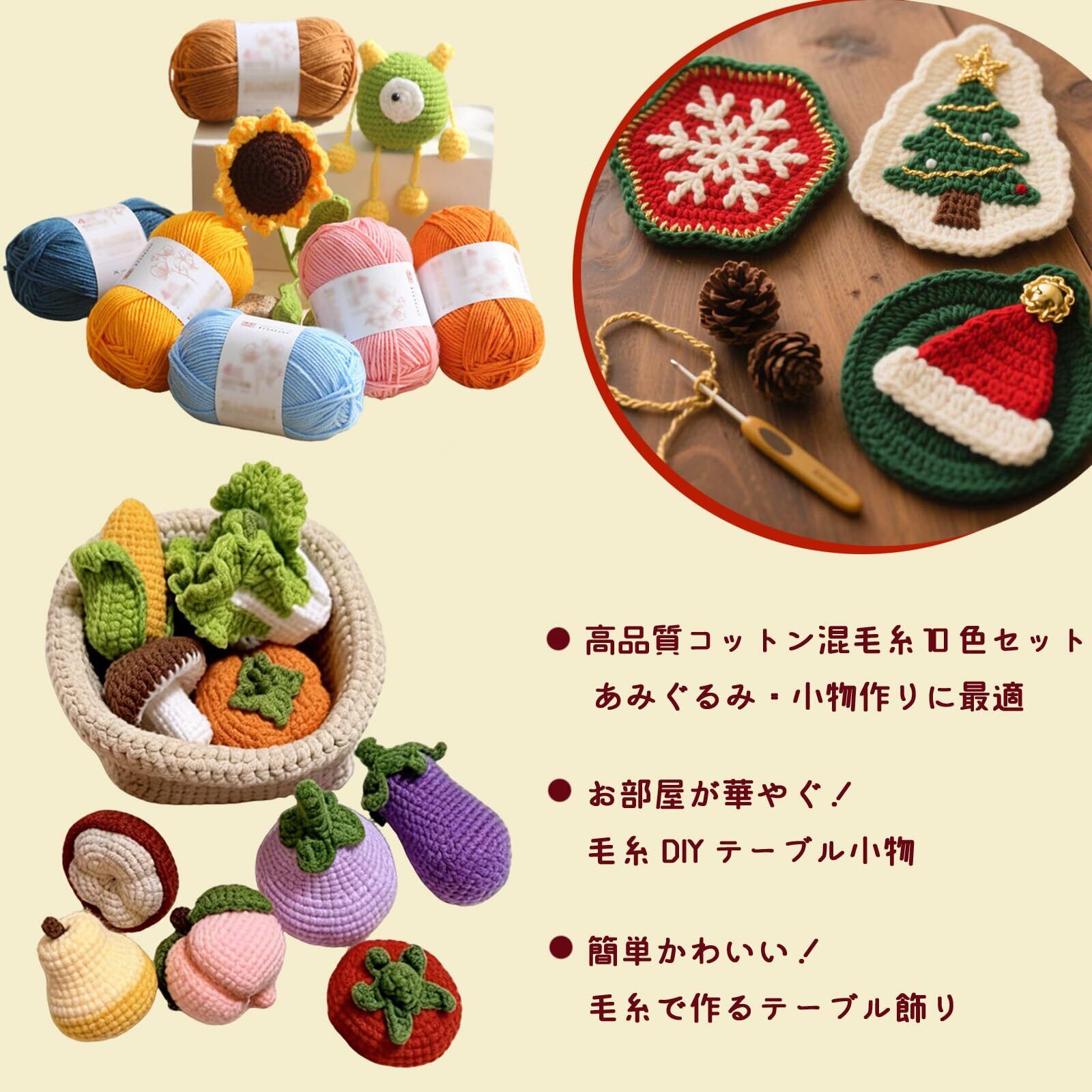 【特価商品】YINKE コットンヤーン 毛糸 40g玉巻(約130m)10色セット かぎ針編み 編み物 小物 デコレーション (カラー5)