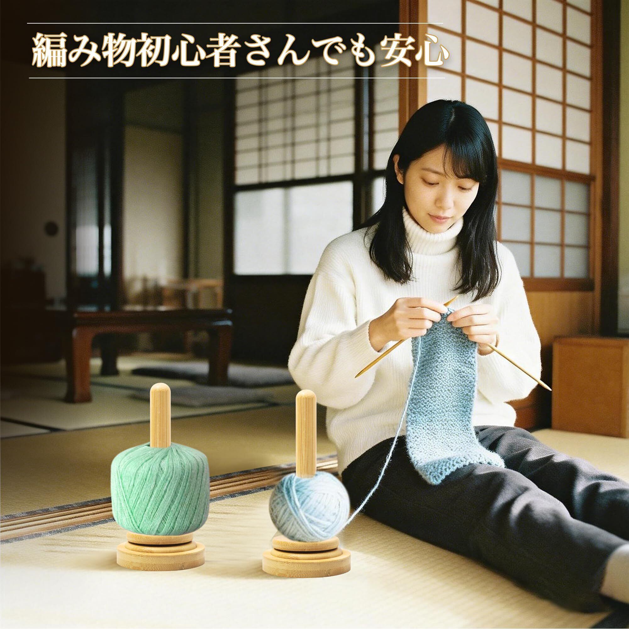 【ヤーンホルダー 回転 - デザイン】360度回転可能なデザインで、糸玉が自由に回転するため、従来の糸玉が絡まりやすい問題を解決します。