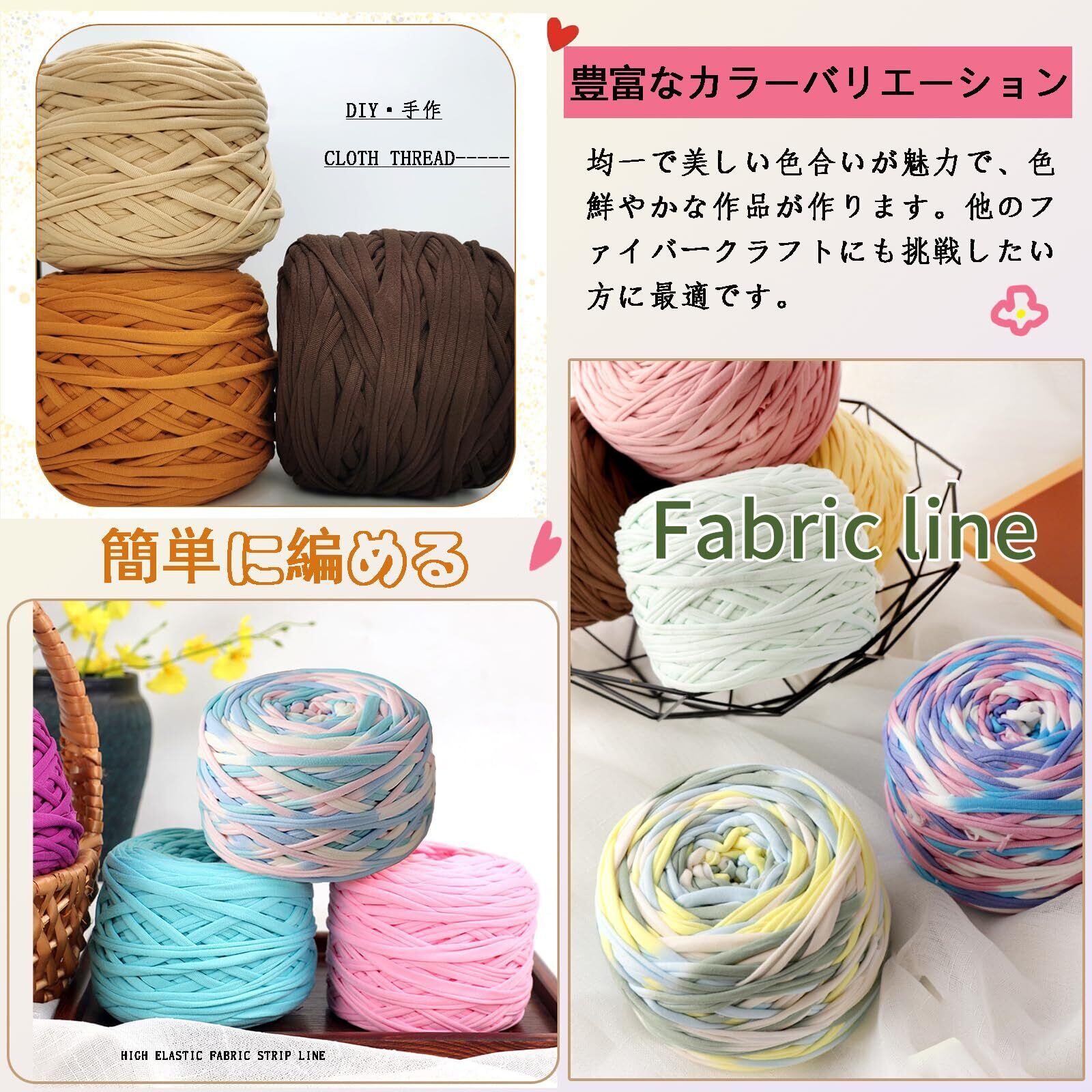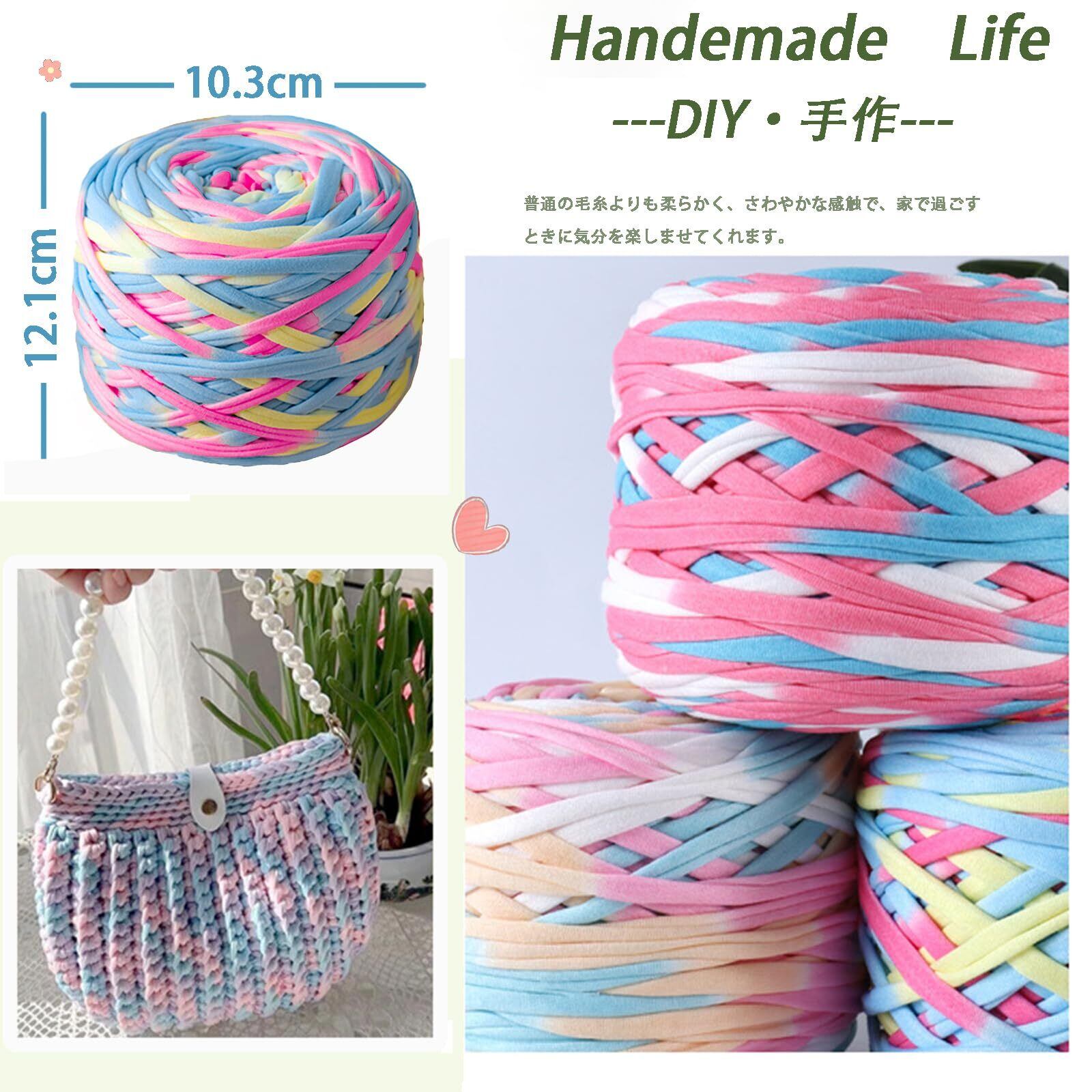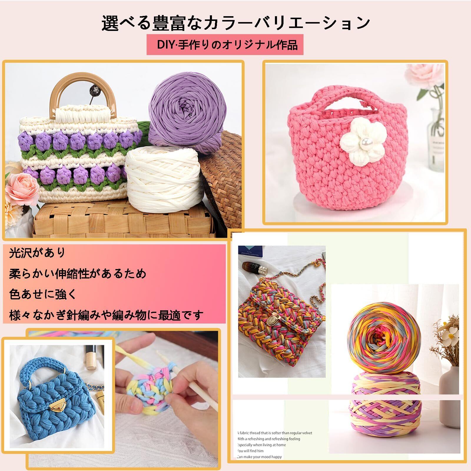 【かぎ針編み用Tシャツヤーン】: ポリエステル繊維製で、光沢があり、柔らかく、伸縮性があり、色あせしないので、様々なかぎ針編み、編み物プロジェクトに最適です。
